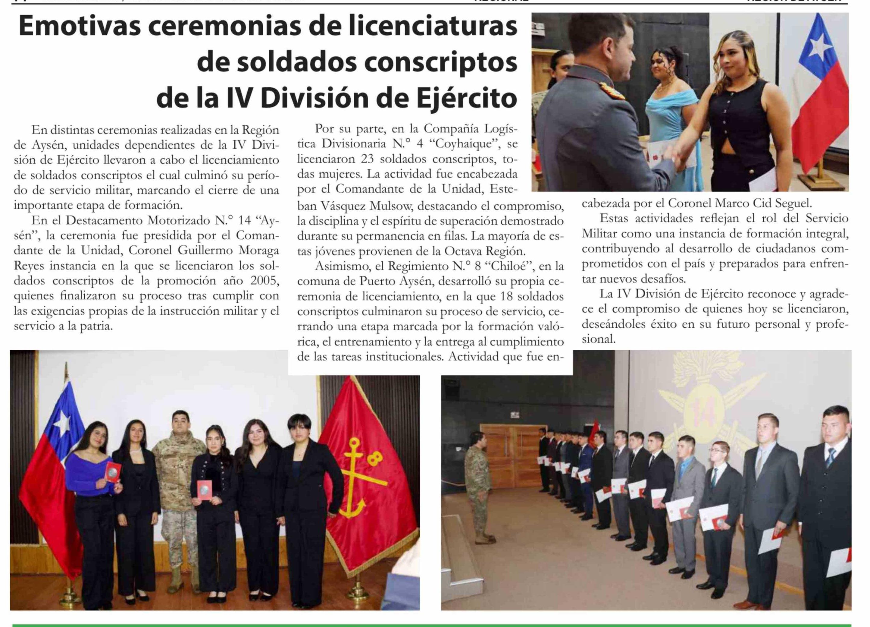 Emotivas ceremonias de licenciaturas de soldados conscriptos de la IV División de Ejército