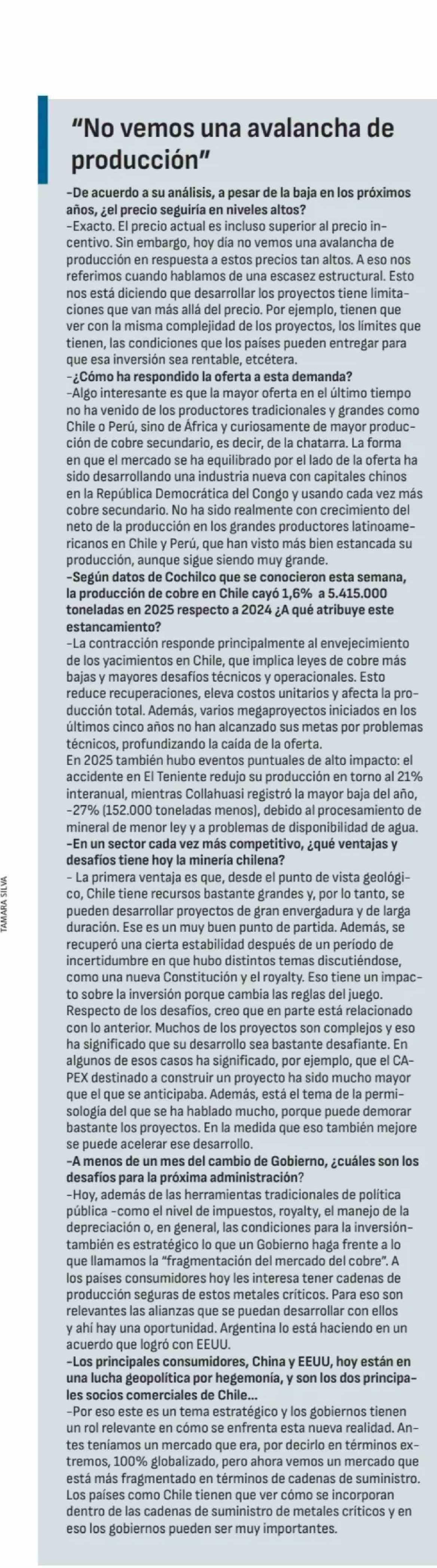 | Título: | Erik Heimlich, de CRU, ante alza del cobre: "Este no es un precio que pueda subir indefinidamente, pero hay una escasez estructural" |