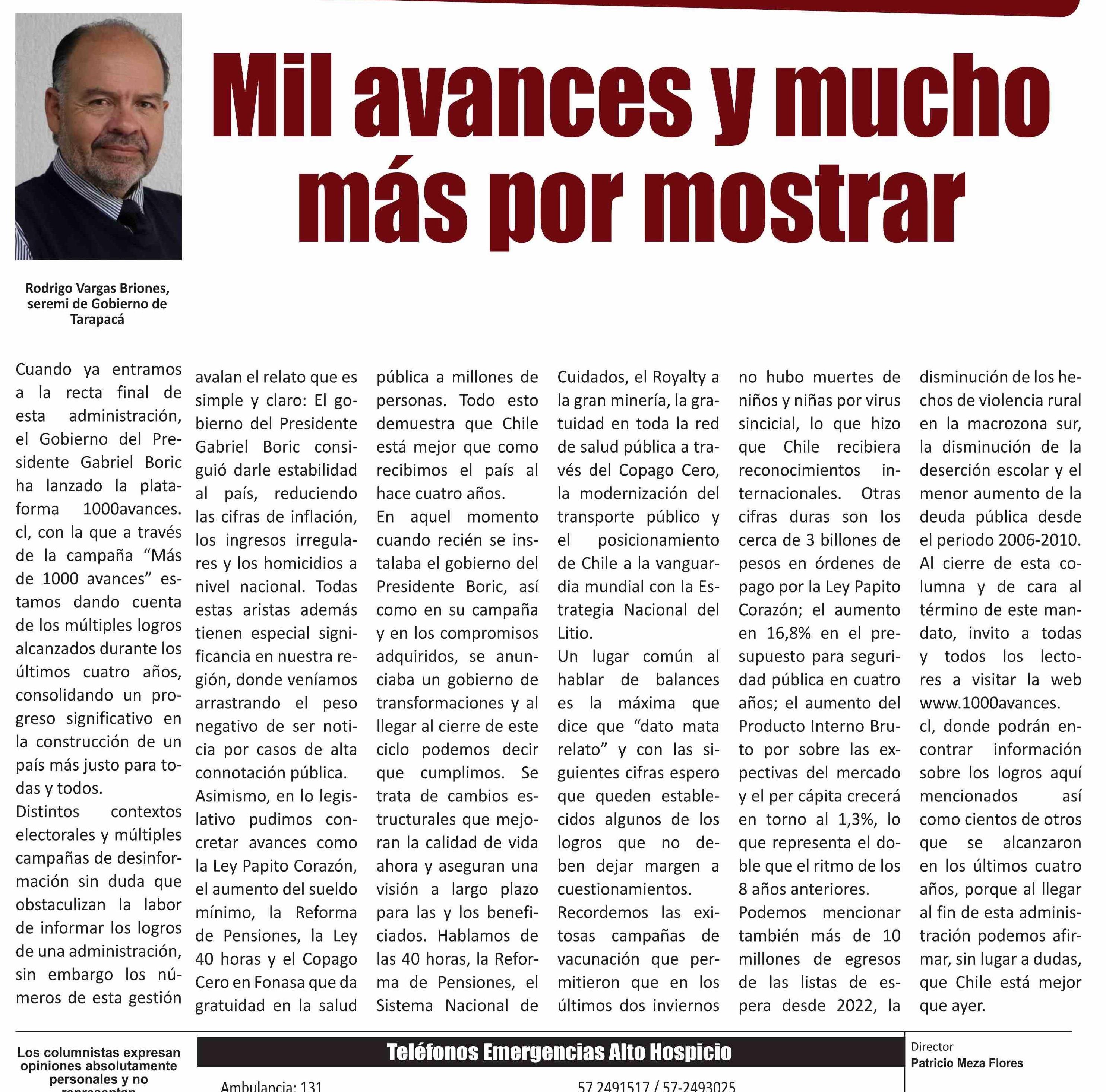Columnas de Opinión: Mil avances y mucho más por mostrar