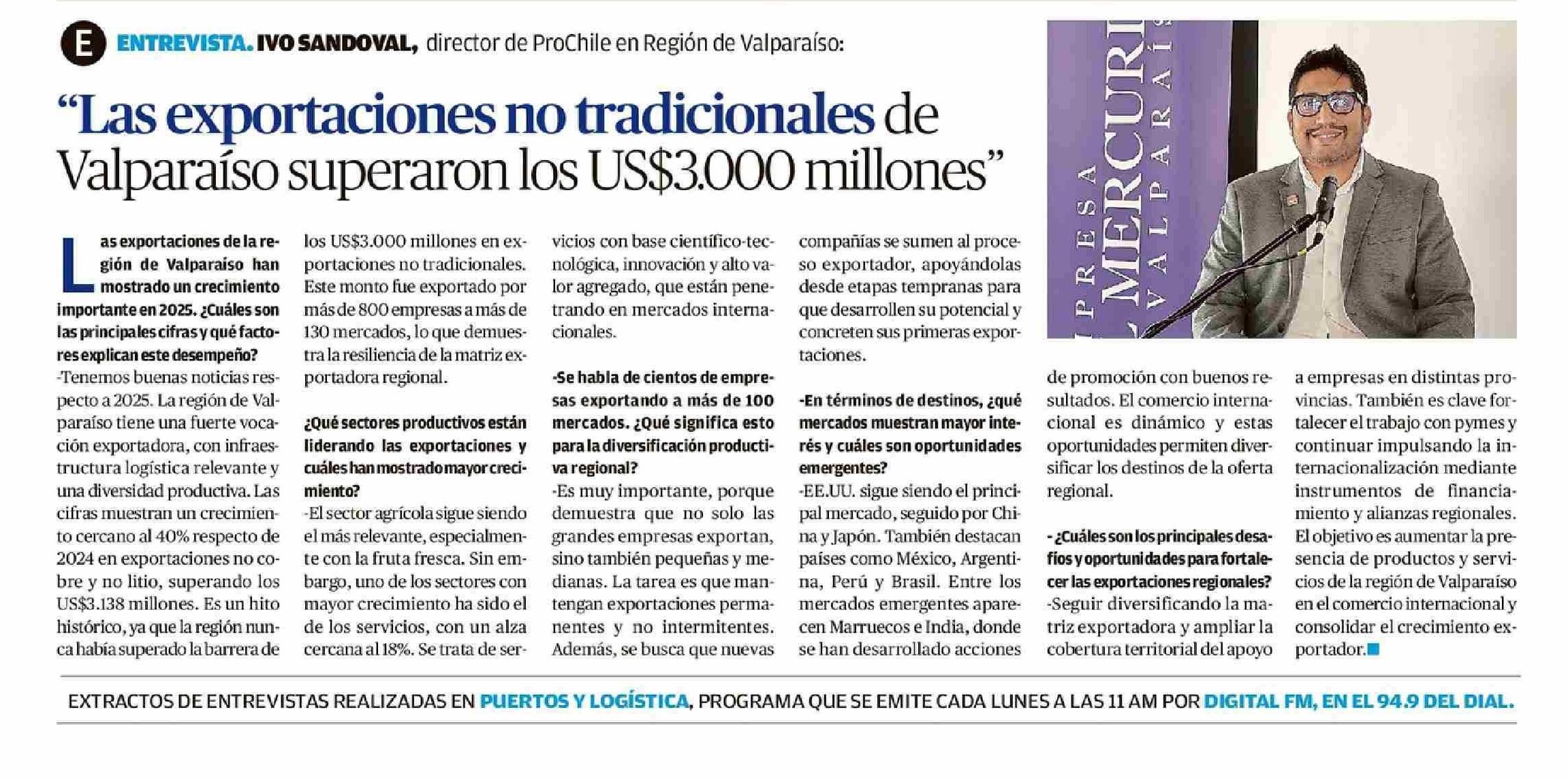 “Las exportaciones no tradicionales de Valparaíso superaron los US$3.000 millones”