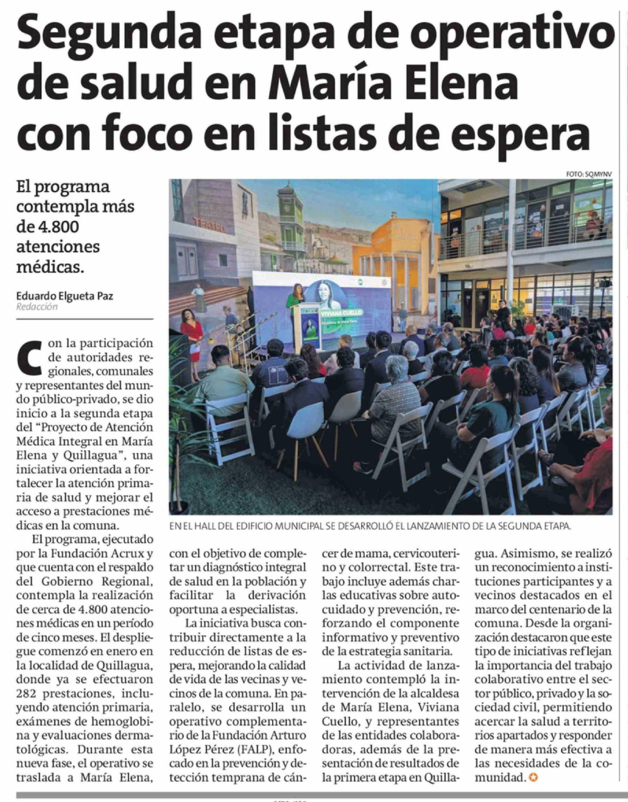 Segunda etapa de operativo de salud en María Elena con foco en listas de espera