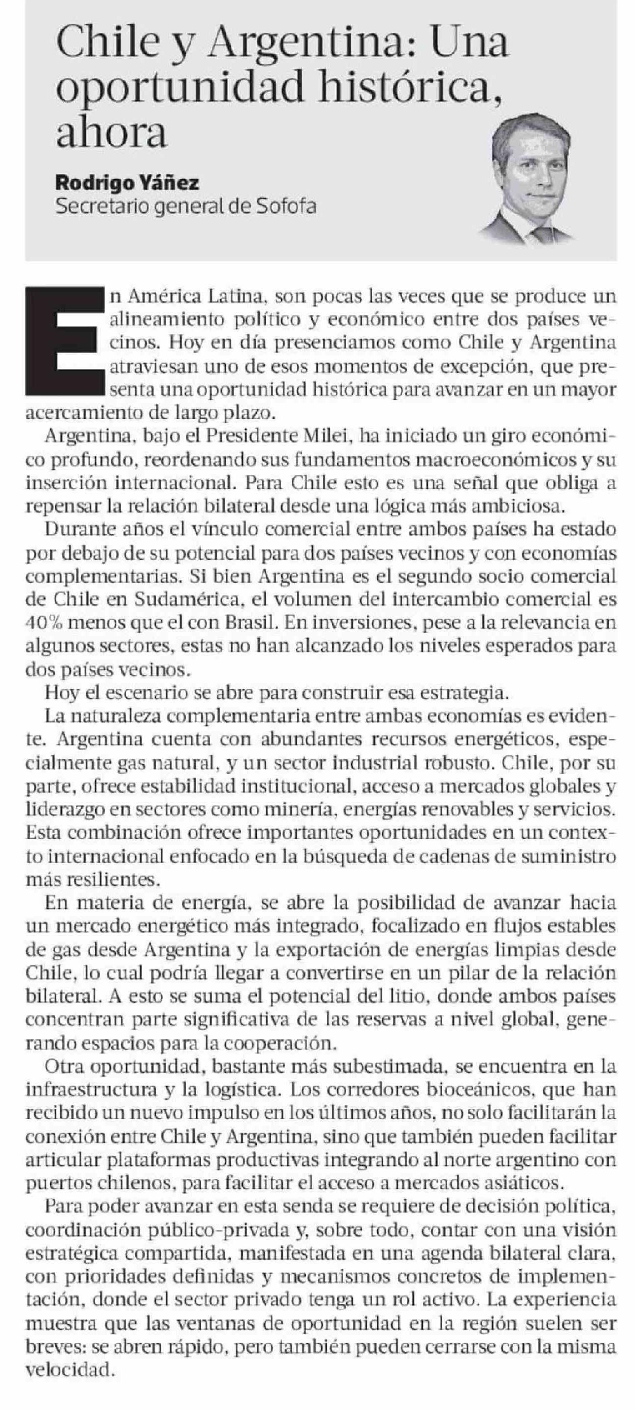 Columnas de Opinión: Chile y Argentina: Una oportunidad histórica, ahora