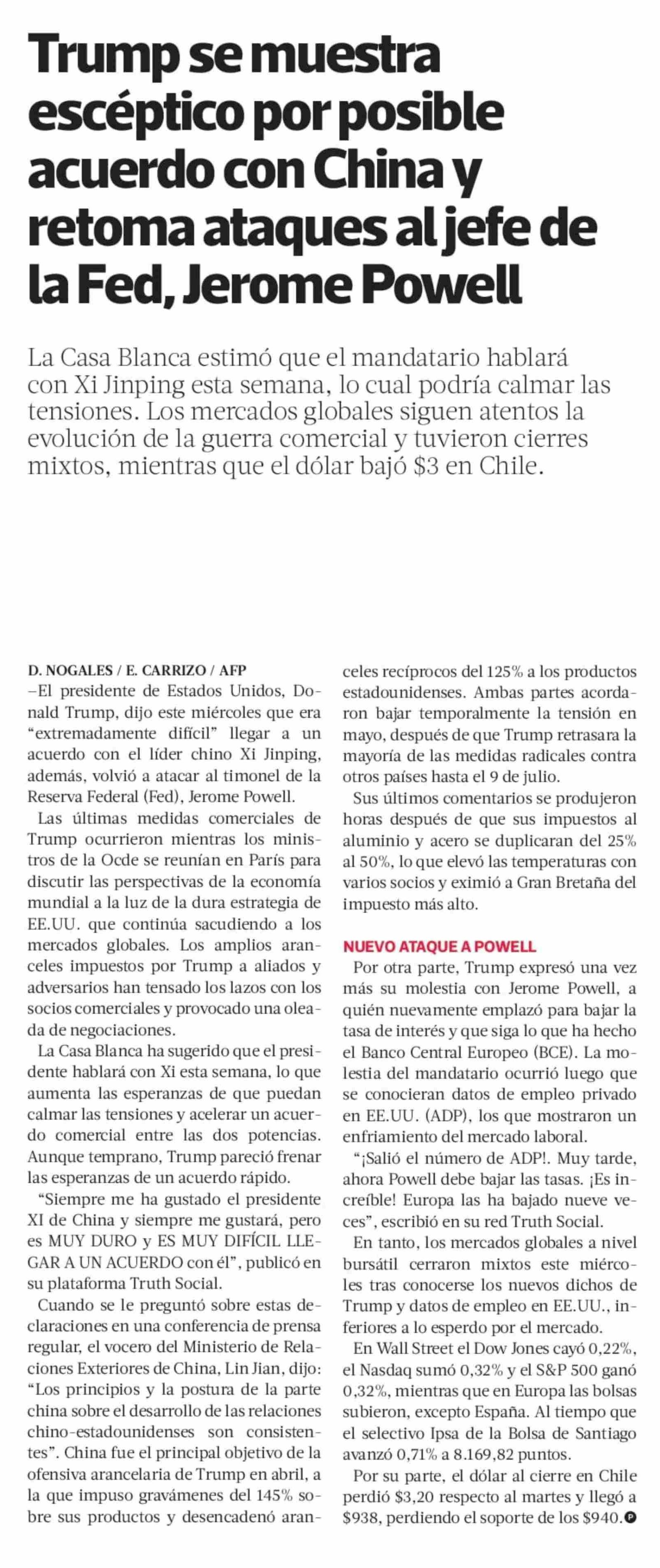 Trump se muestra escéptico por posible acuerdo con China y retoma ataques al jefe de la Fed, Jerome Powell