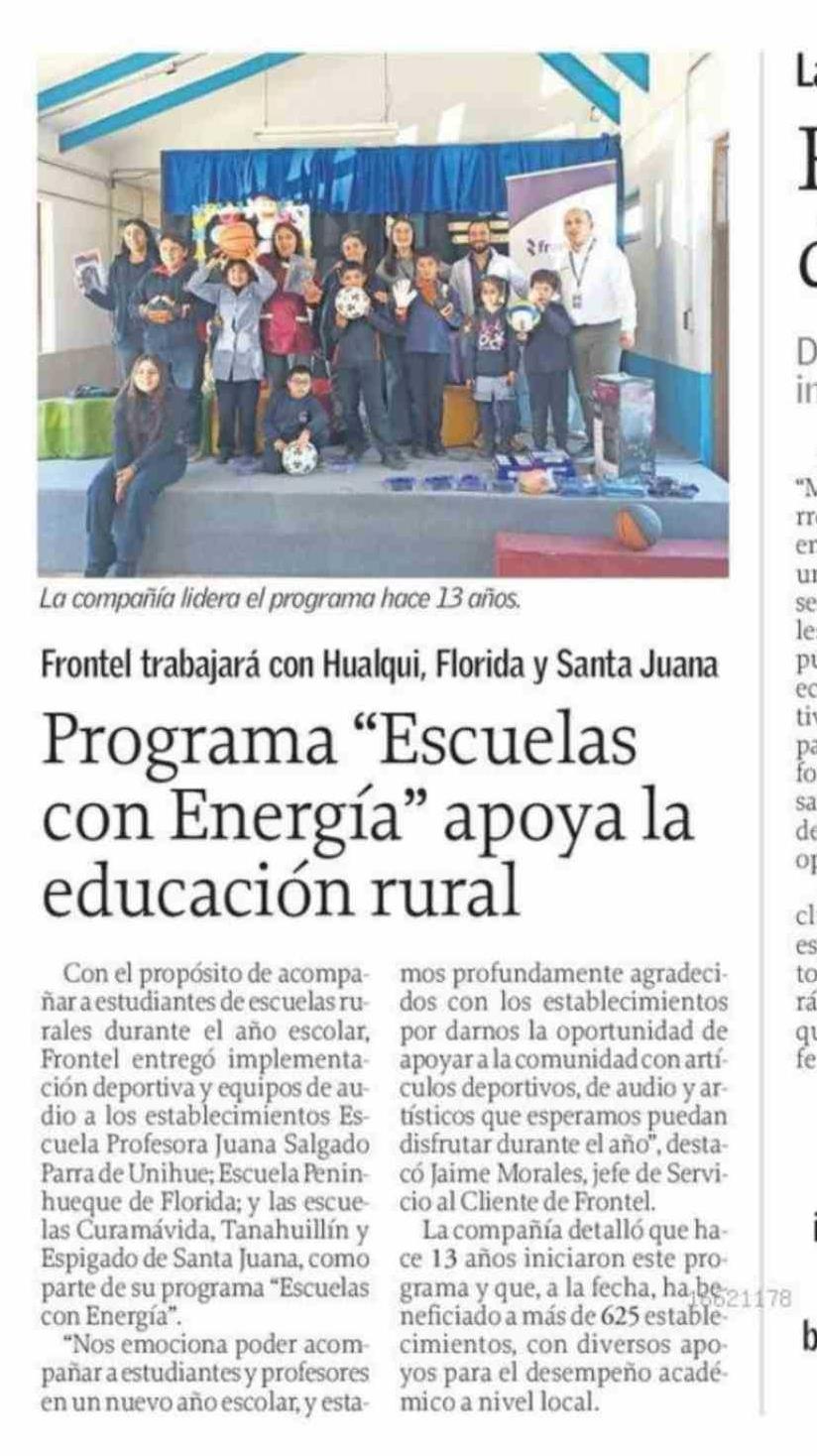 Programa "Escuelas con Energía" apoya la educación rural