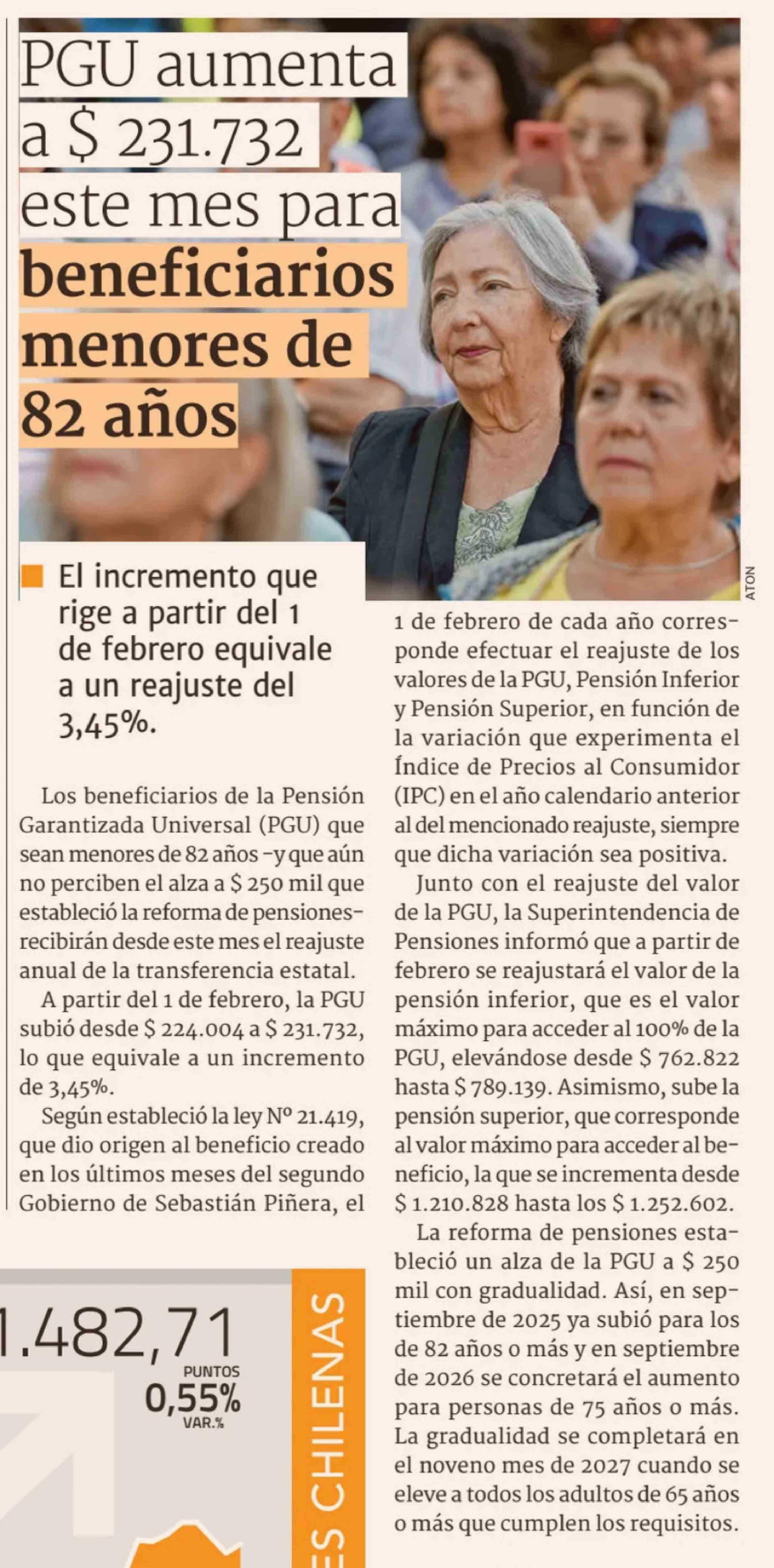 PGU aumenta a $ 231.732 este mes para beneficiarios menores de 82 años