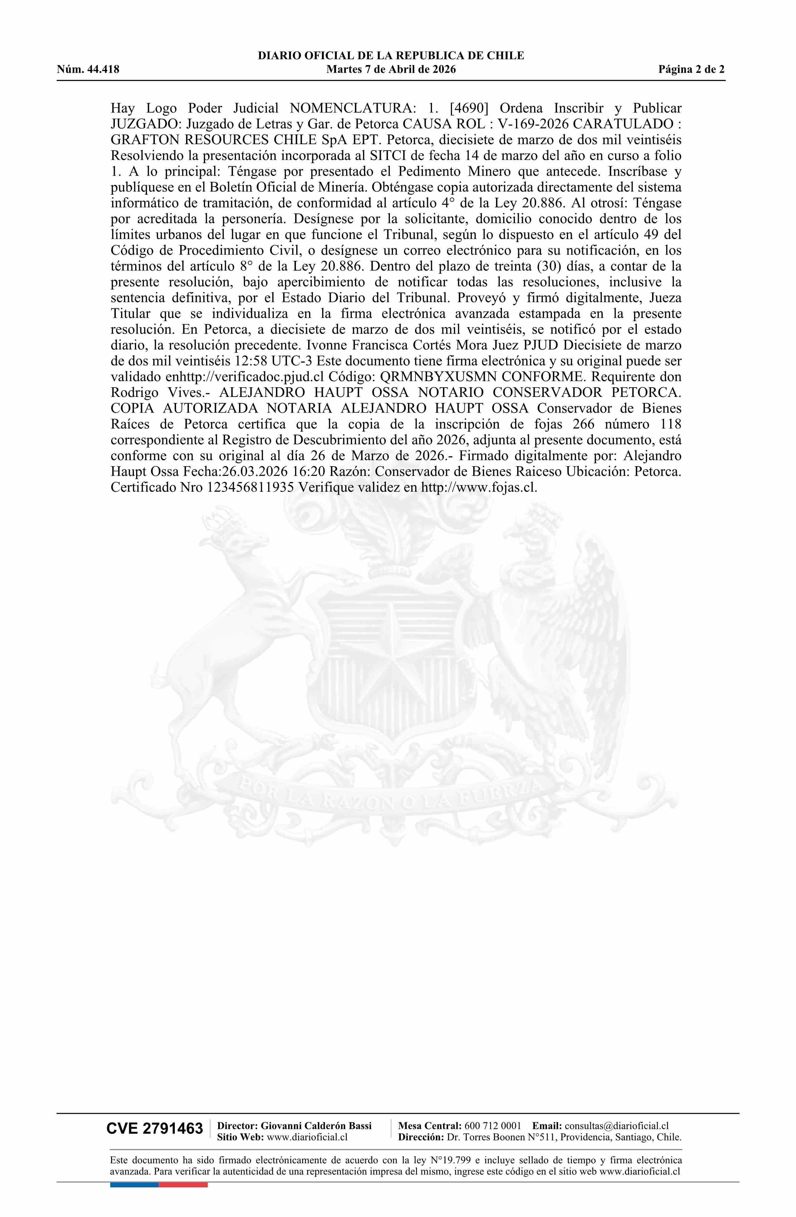 GEXPLORE 1 / Grafton Resources Chile SpA
