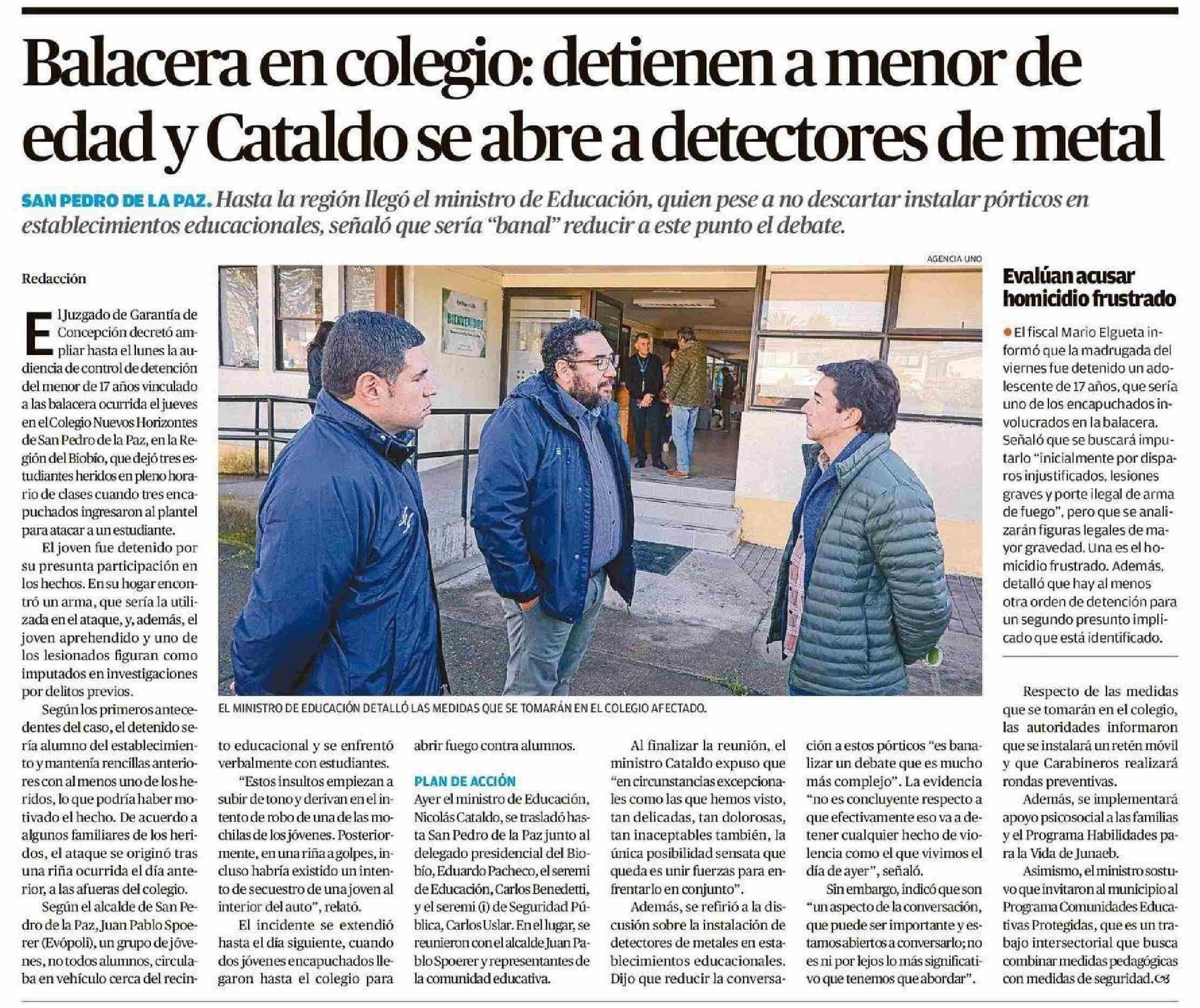 Balacera en colegio: detienen a menor de edad y Cataldo se abre a detectores de metal