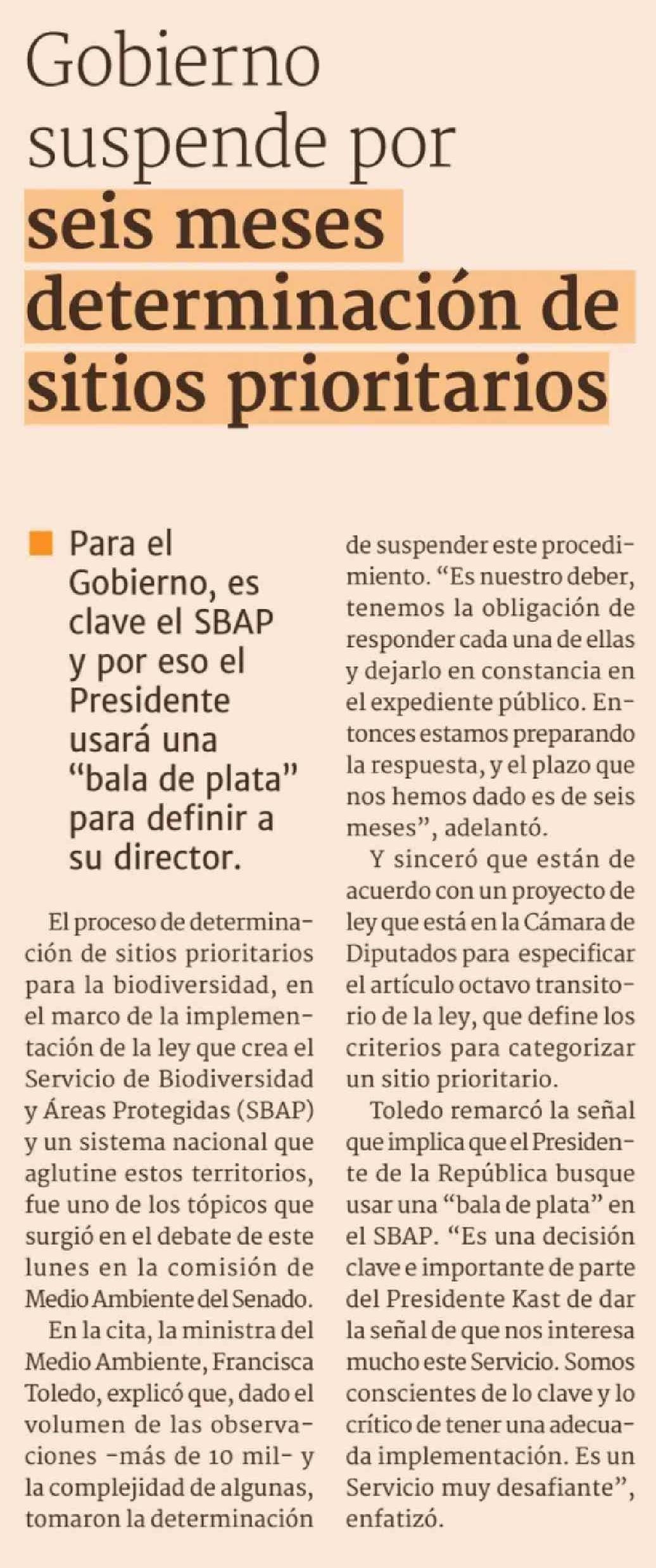Gobierno suspende por seis meses determinación de sitios prioritarios