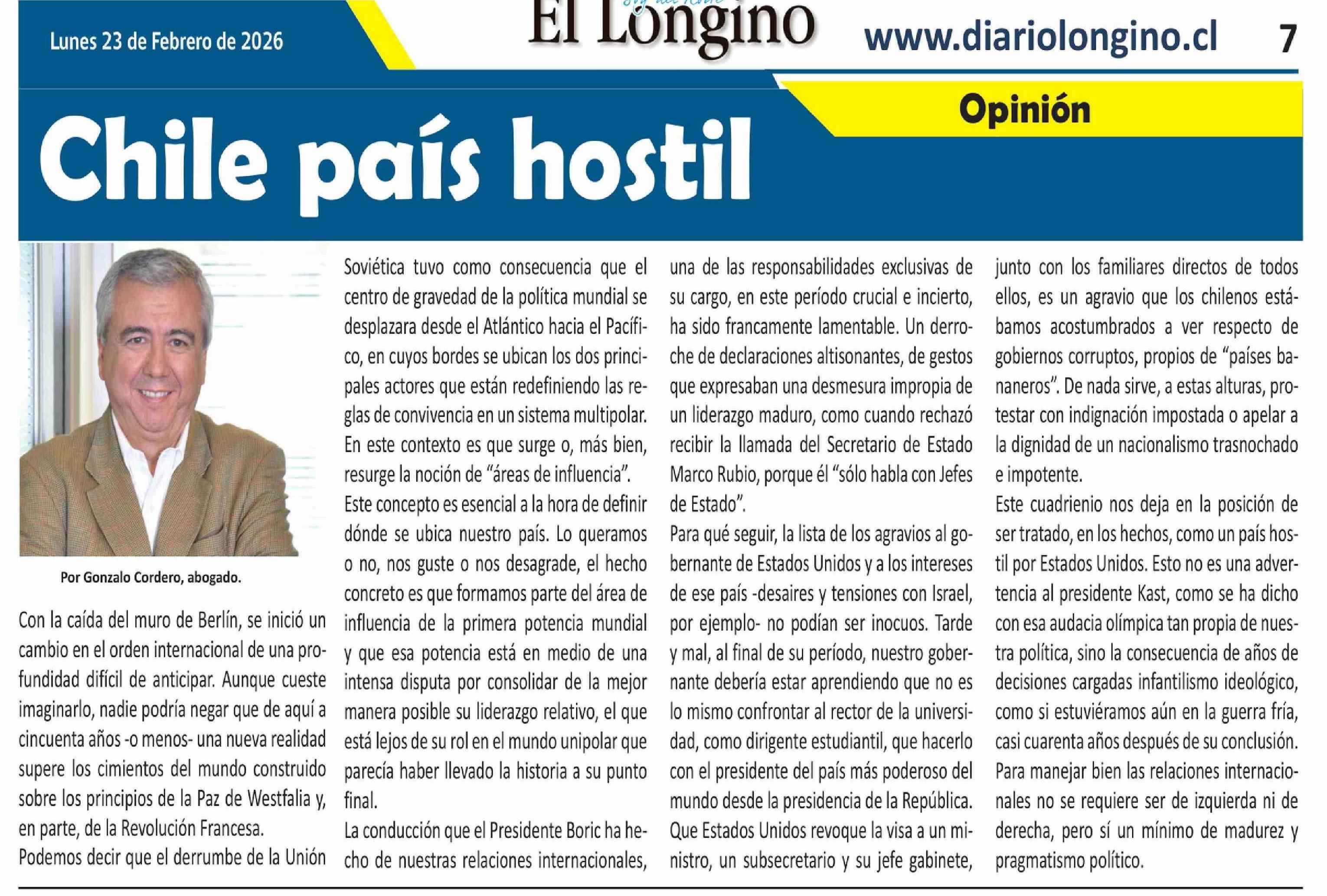 Fecha: 23-02-2026 Sector: Columnas de Opinión Región: Región de Tarapacá