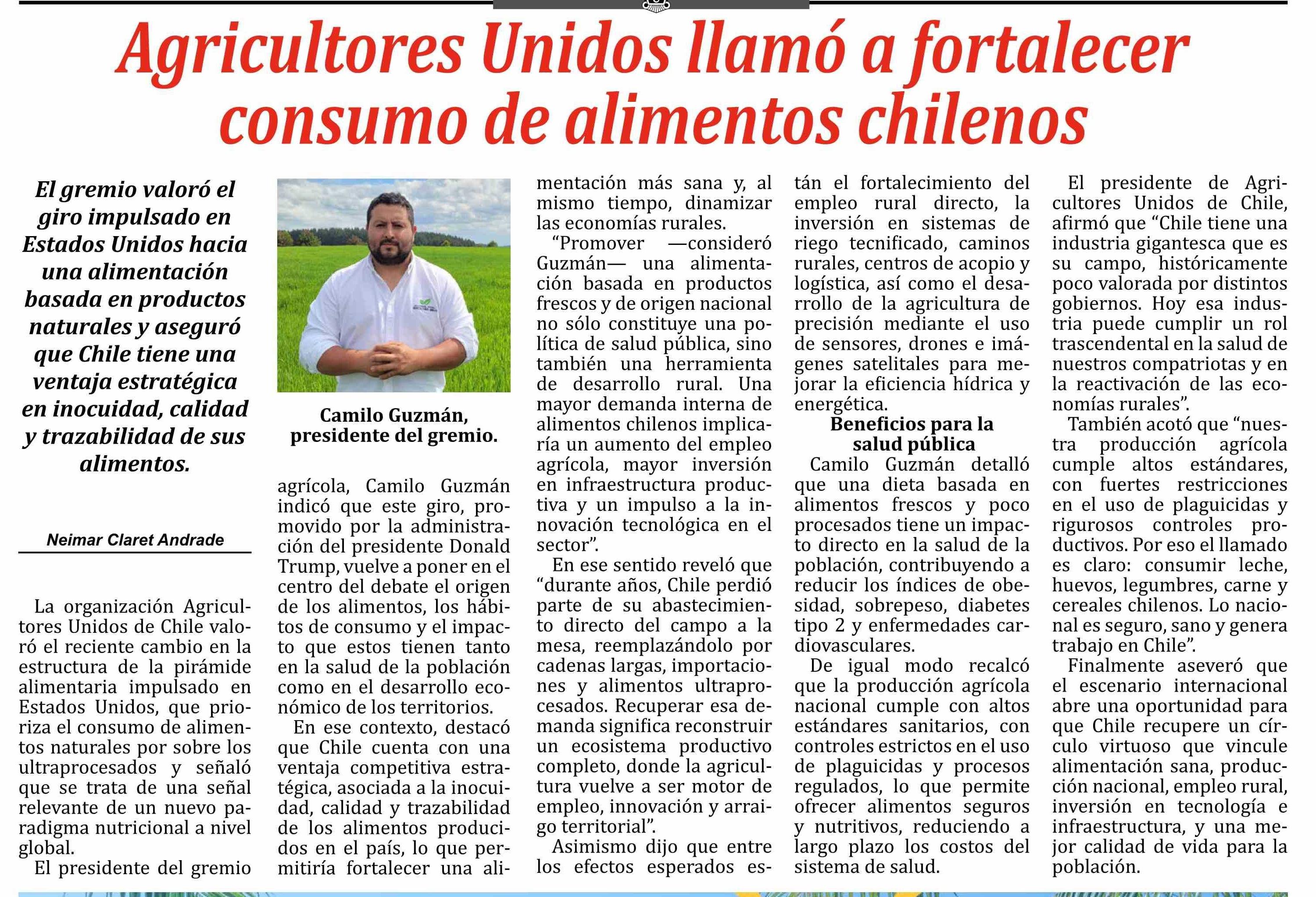 Agricultores Unidos llamó a fortalecer consumo de alimentos chilenos
