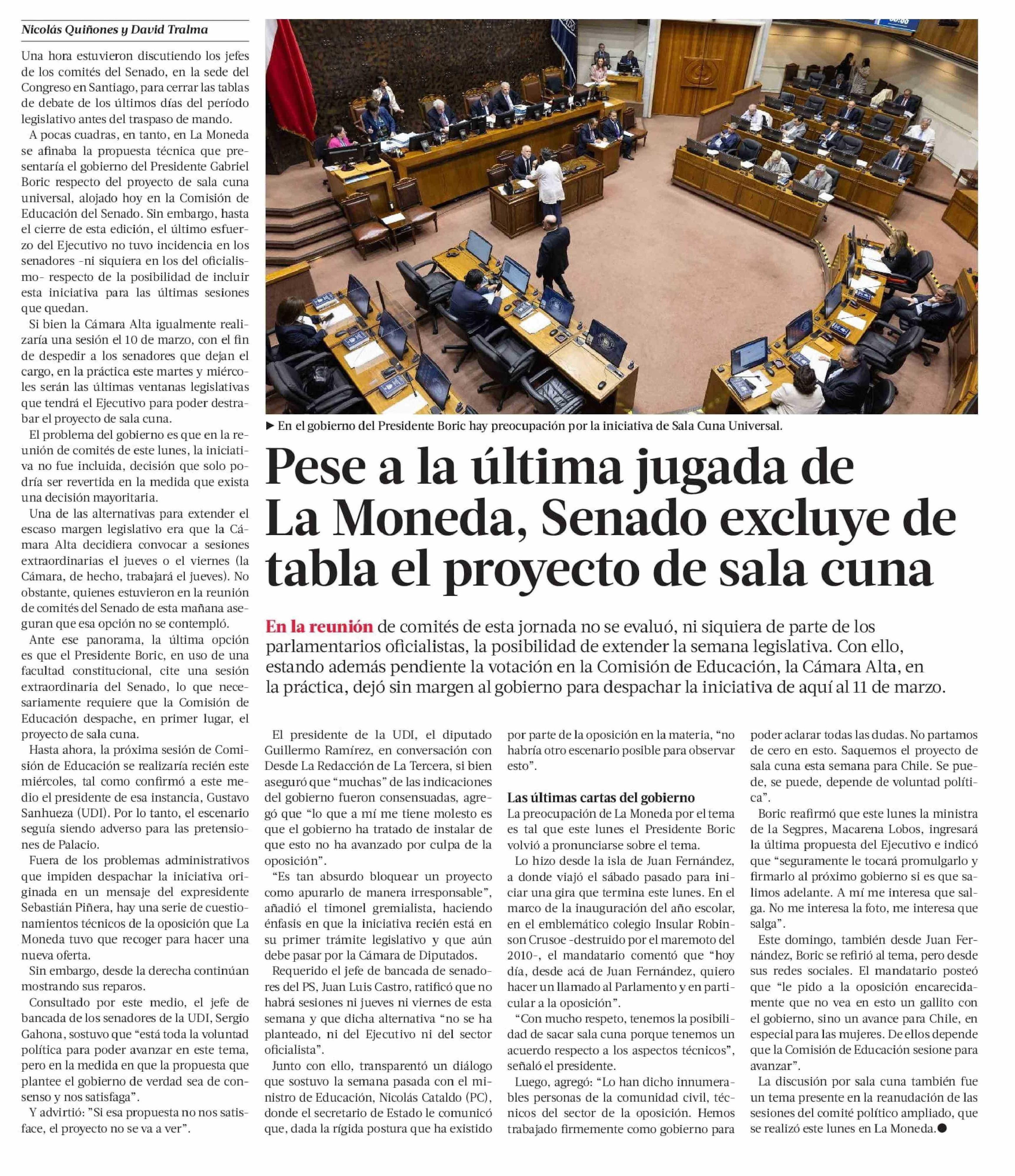 Pese a la última jugada de La Moneda, Senado excluye de tabla el proyecto de sala cuna