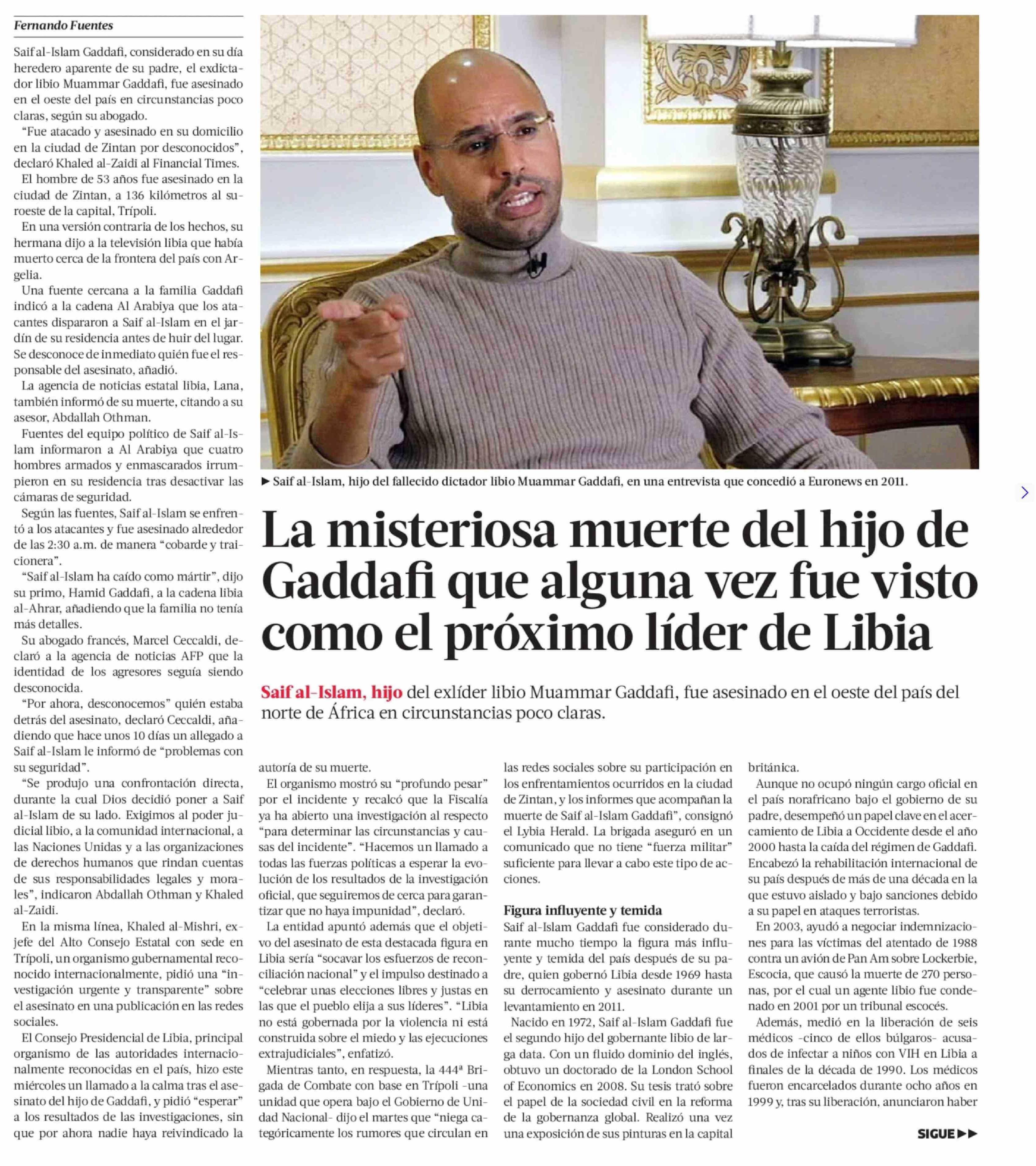 La misteriosa muerte del hijo de Gaddafi que alguna vez fue visto como el próximo líder de Libia