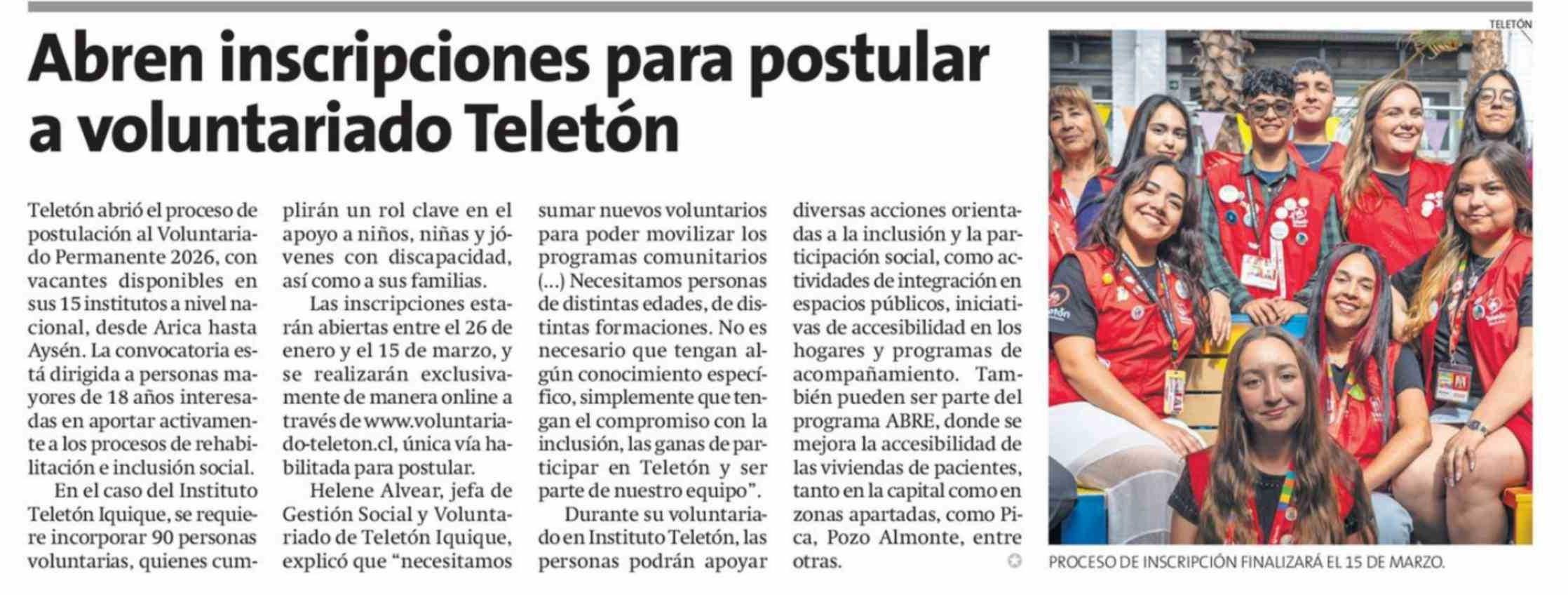 Abren inscripciones para postular a voluntariado Teletón