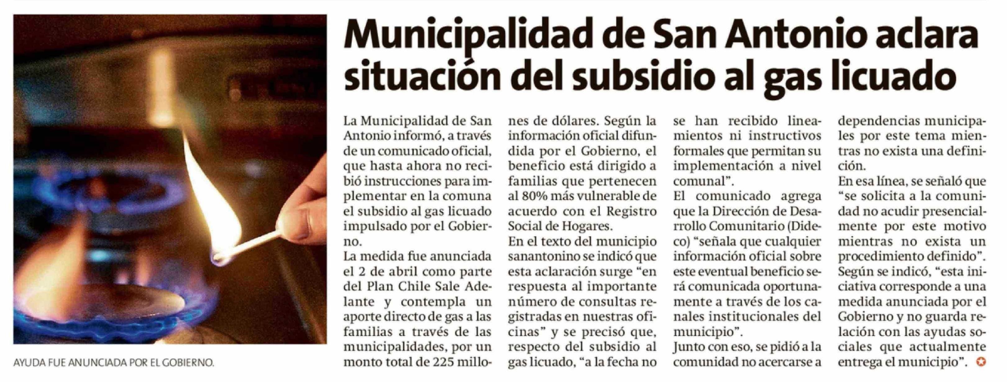 Municipalidad de San Antonio aclara situación del subsidio al gas licuado