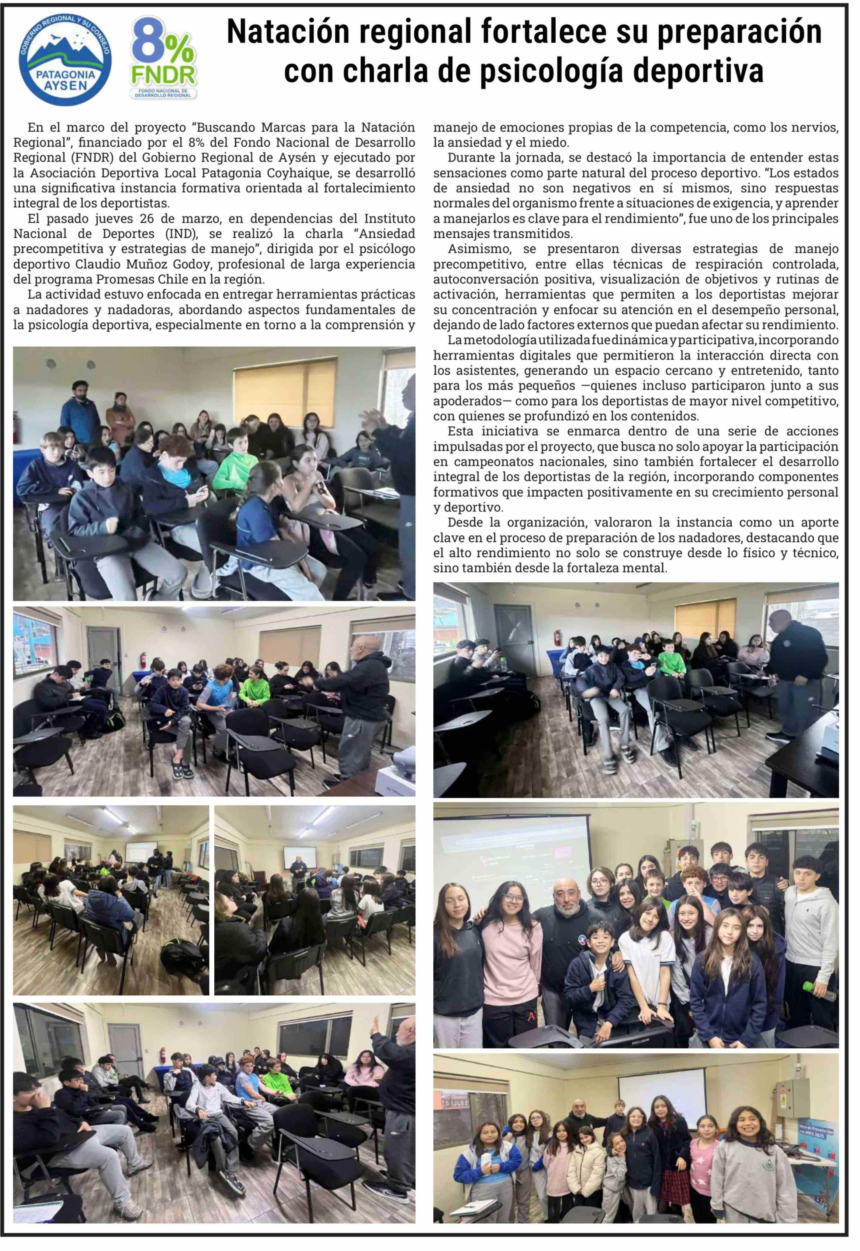 Título: Natación regional fortalece su preparación con charla de psicología deportiva