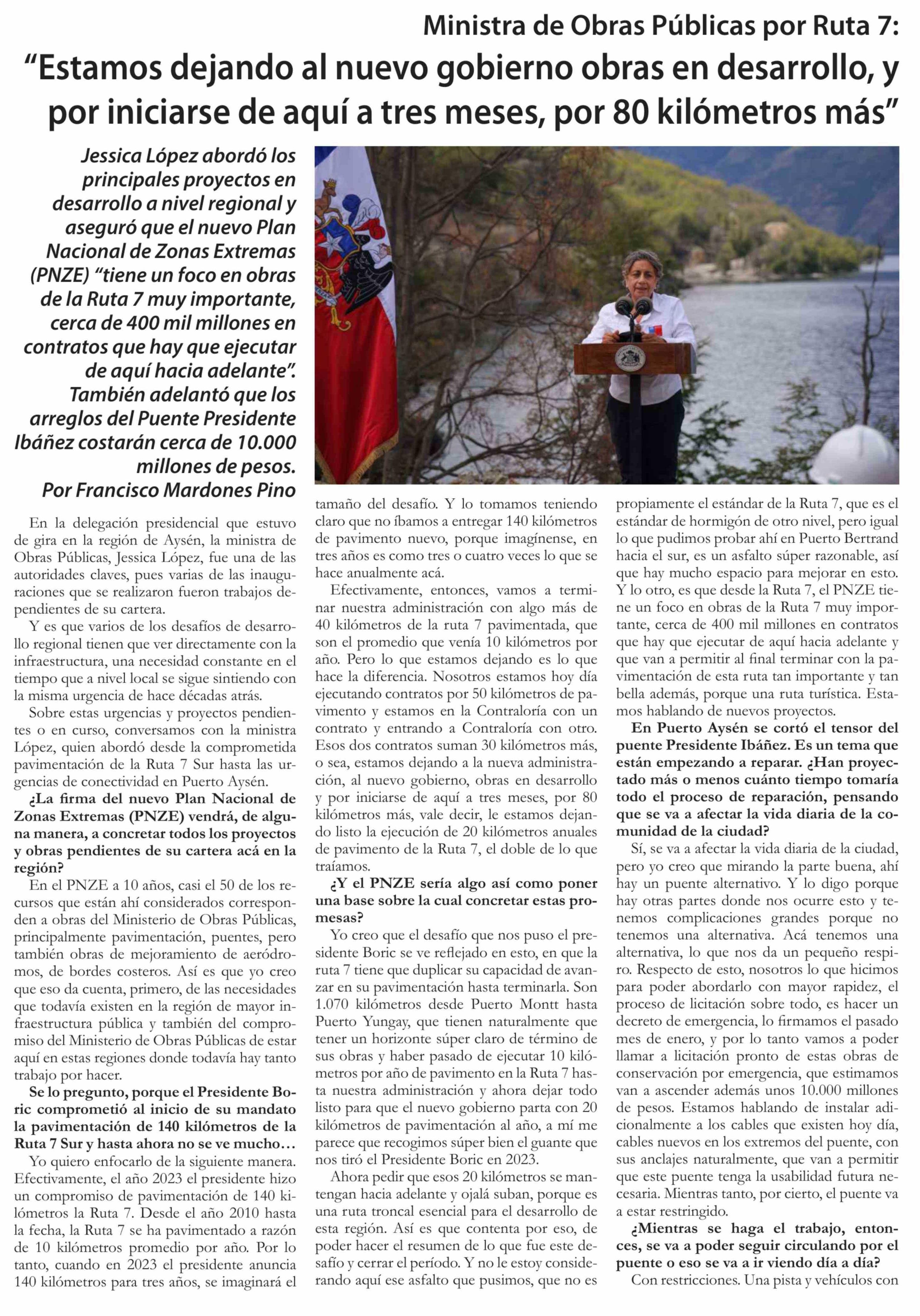 "Estamos dejando al nuevo gobierno obras en desarrollo, y por iniciarse de aquí a tres meses, por 80 kilómetros más"