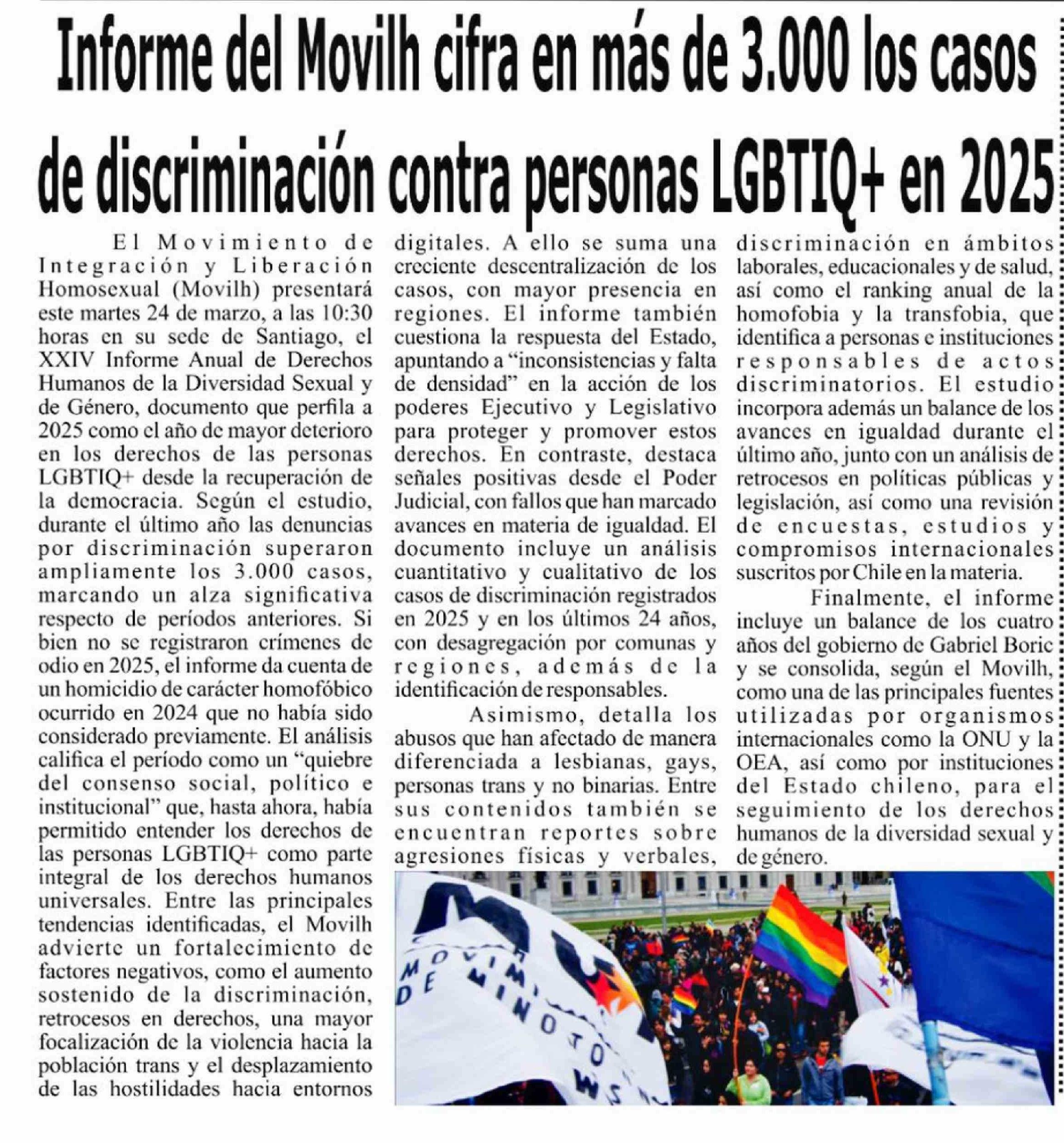 Informe del Movil cifra en más de 3,000 los casos. de discriminación contra personas LGBTIO+ en 2025