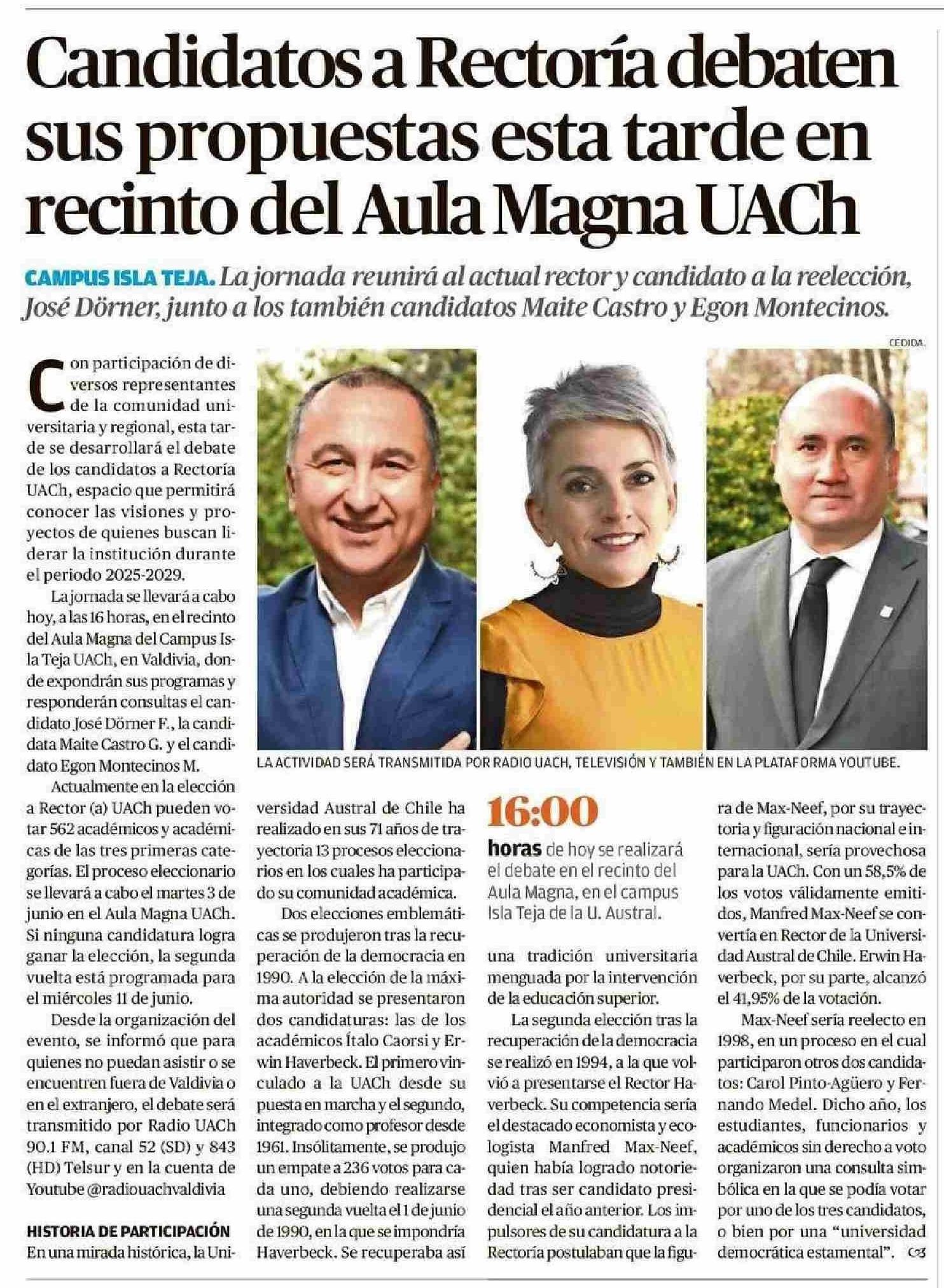 Candidatos a Rectoría debaten sus propuestas esta tarde en recinto del Aula Magna UACh