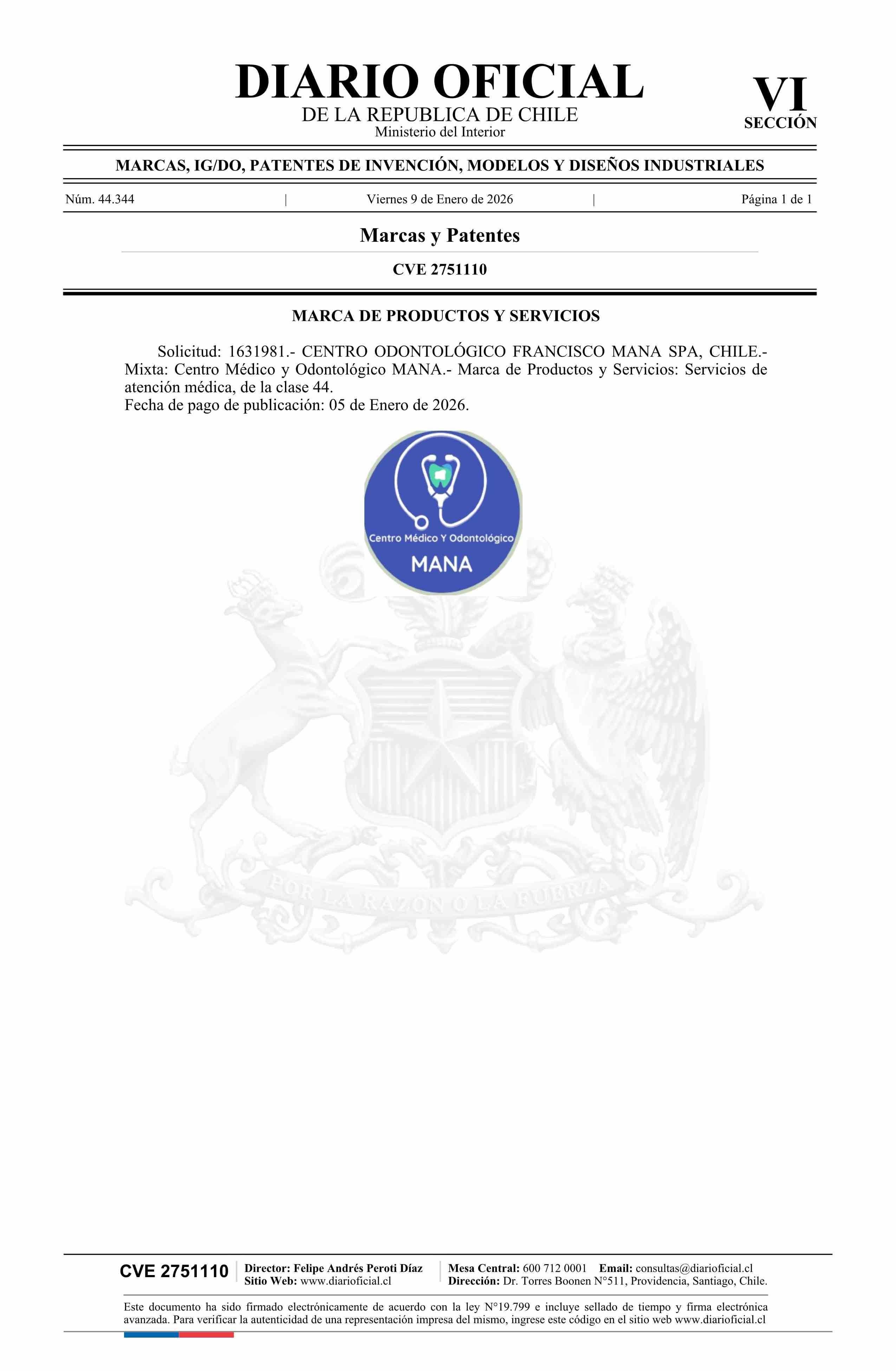 Solicitud número 1631981.- Centro Médico y Odontológico MANA