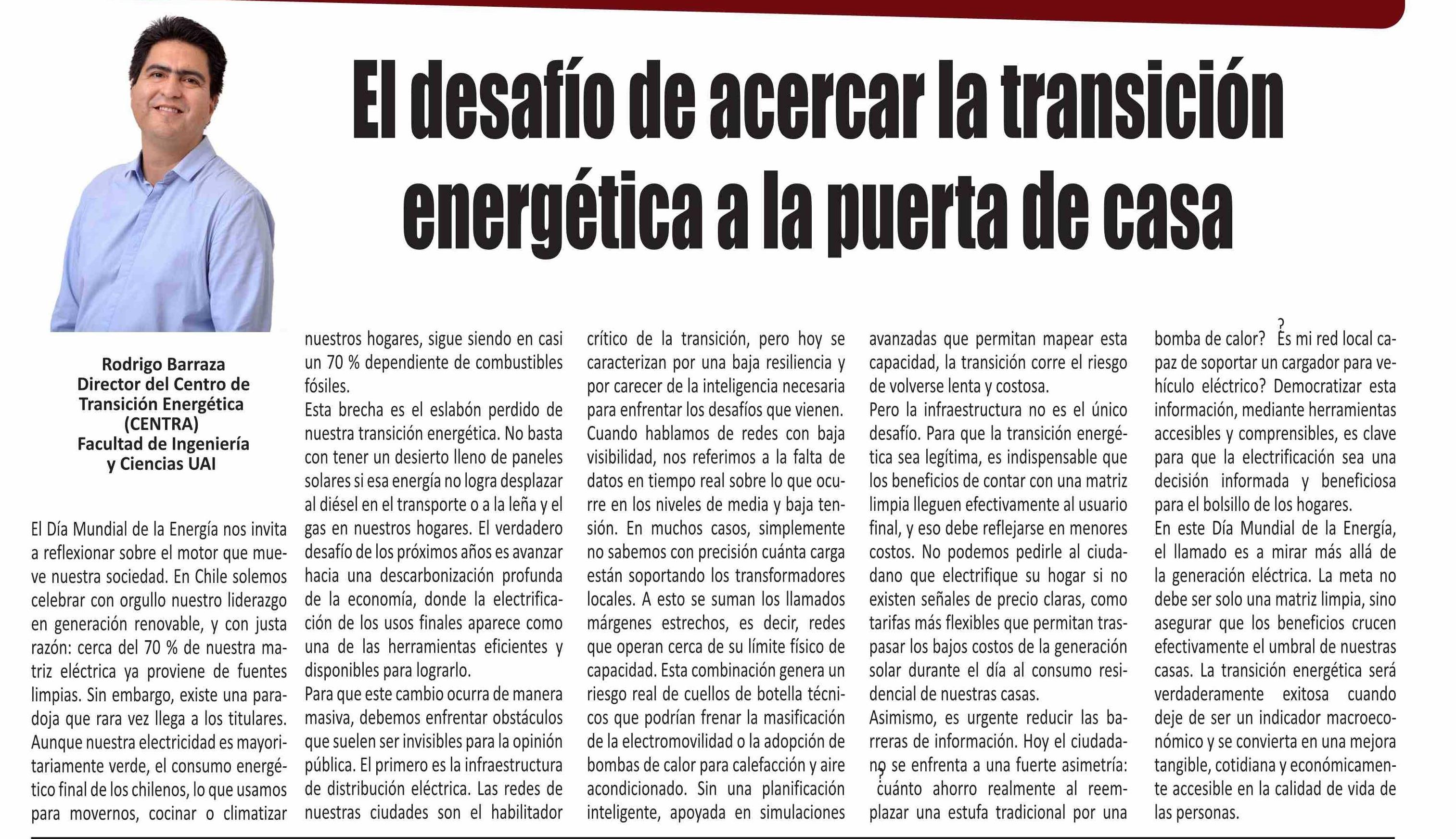 COLUMNAS DE OPINIÓN: El desafío de acercar la transicién energética a la puerta de casa