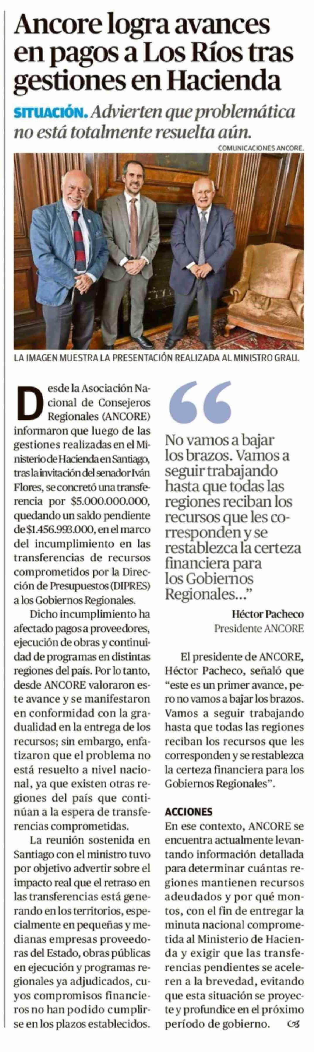 Ancore logra avances en pagos a Los Ríos tras gestiones en Hacienda