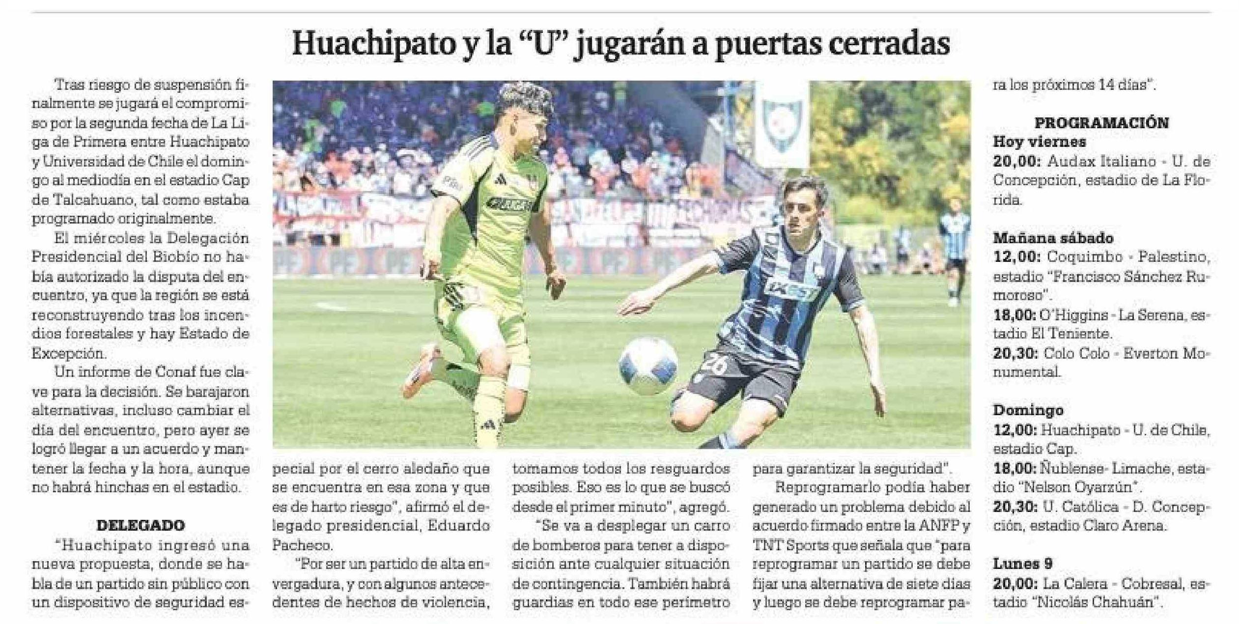 Huachipato y la “U” jugarán a puertas cerradas