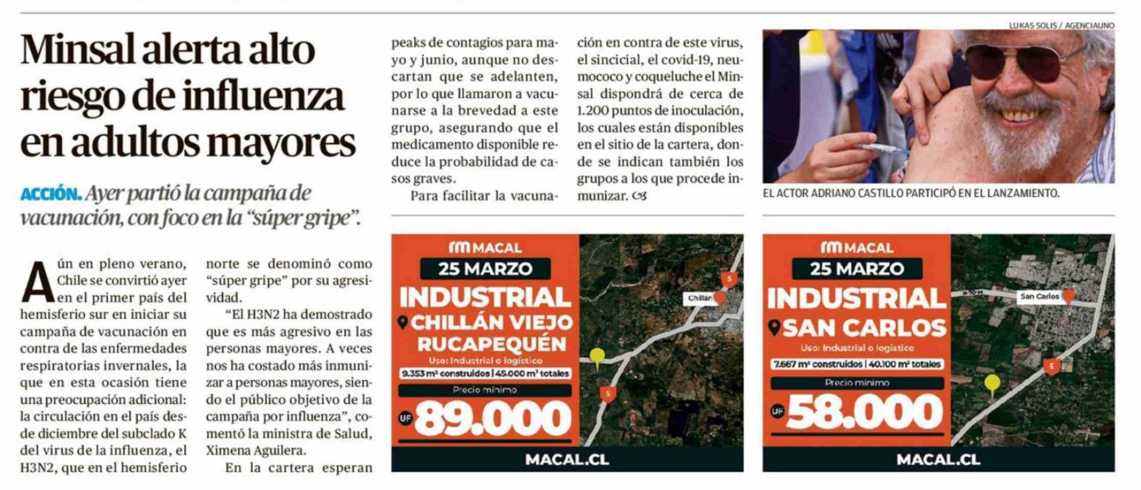 Minsal alerta alto riesgo de influenza en adultos mayores