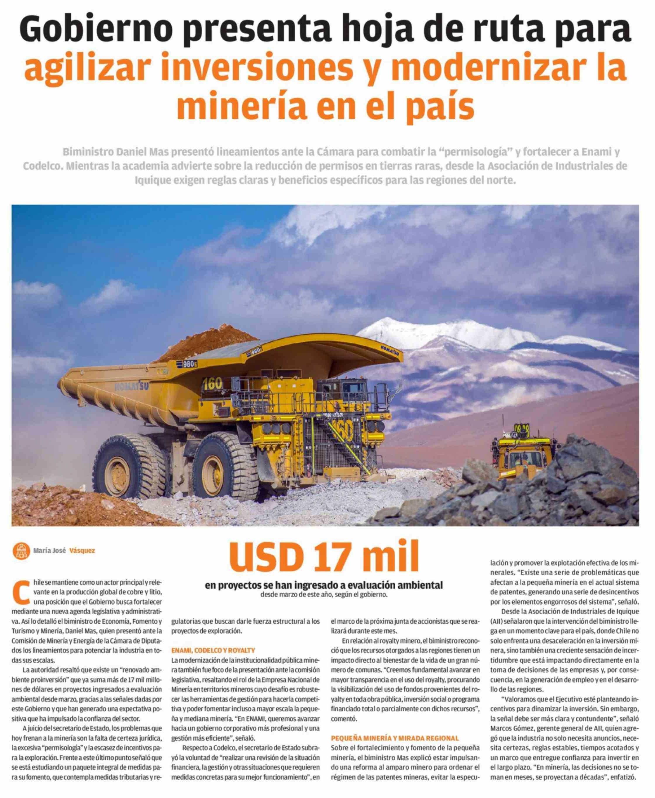 Gobierno presenta hoja de ruta para agilizar inversiones y modernizar la minería en el país