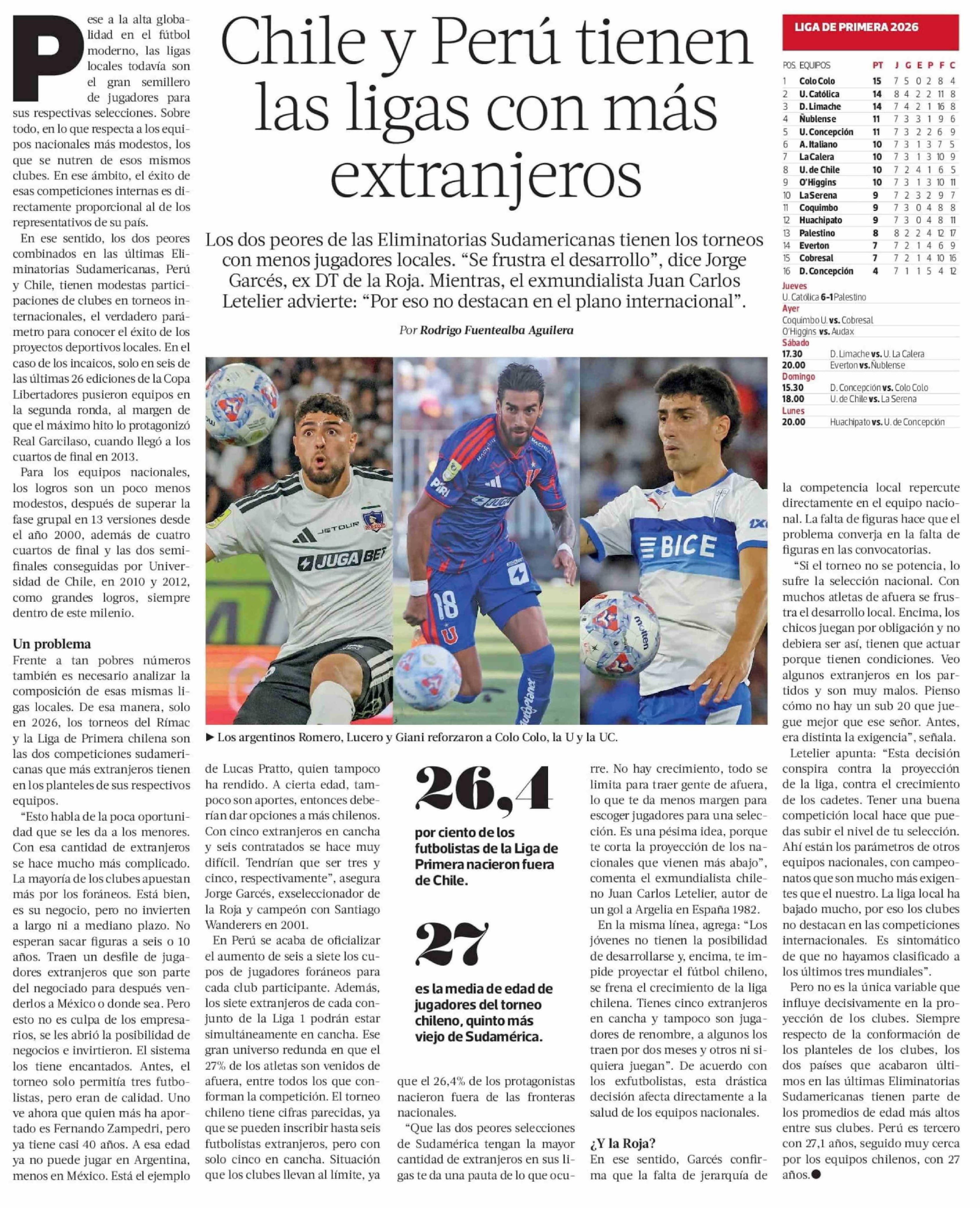 Chile y Perú tienen las ligas con más extranjeros