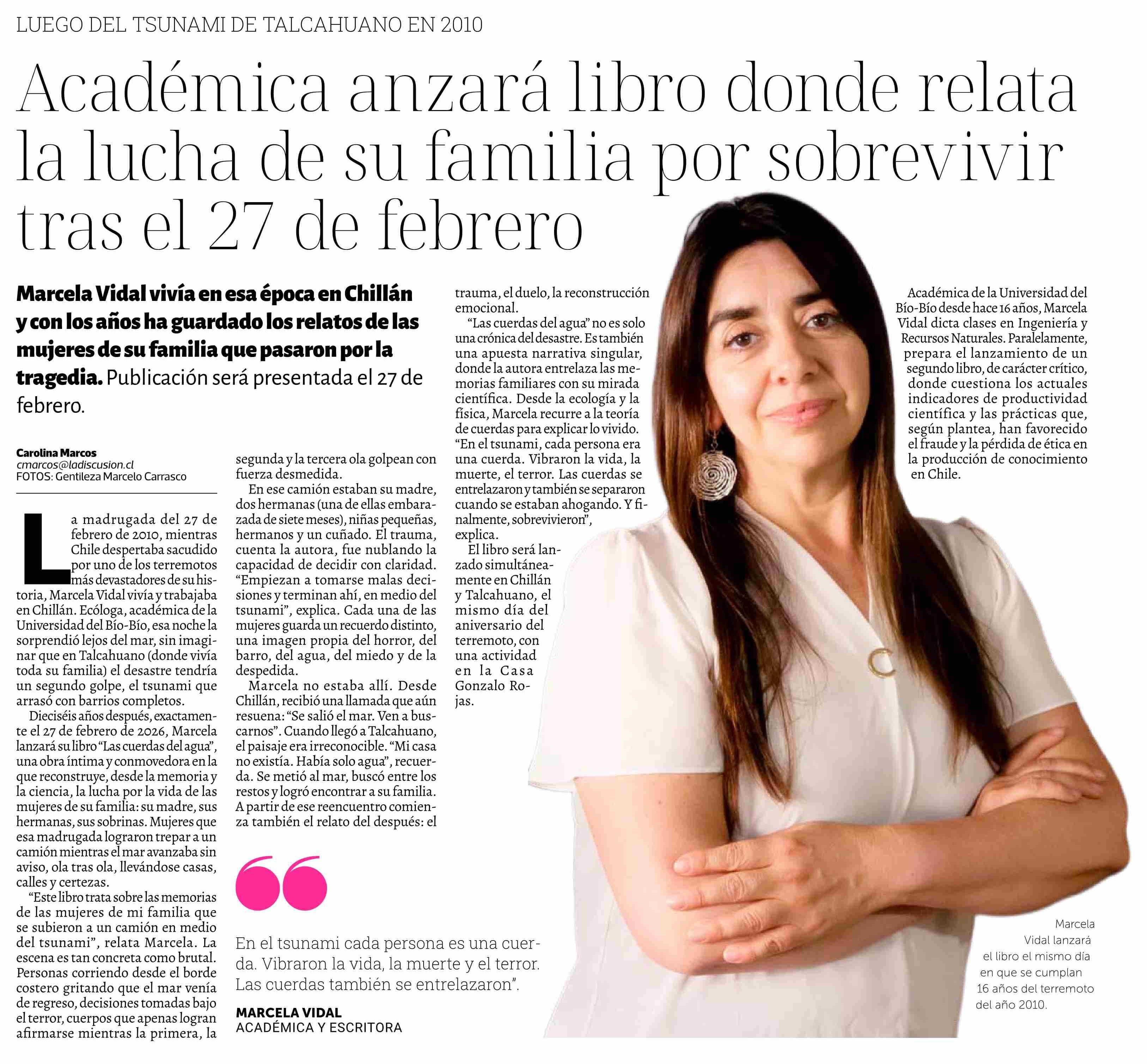 Académica anzará libro donde relata la lucha de su familia por sobrevivir tras el 27 de febrero