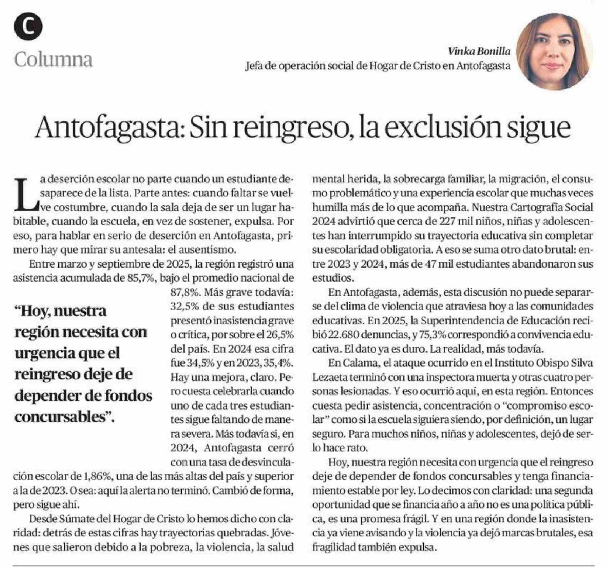 Columnas de Opinión: Antofagasta: Sin reingreso, la exclusión sigue
