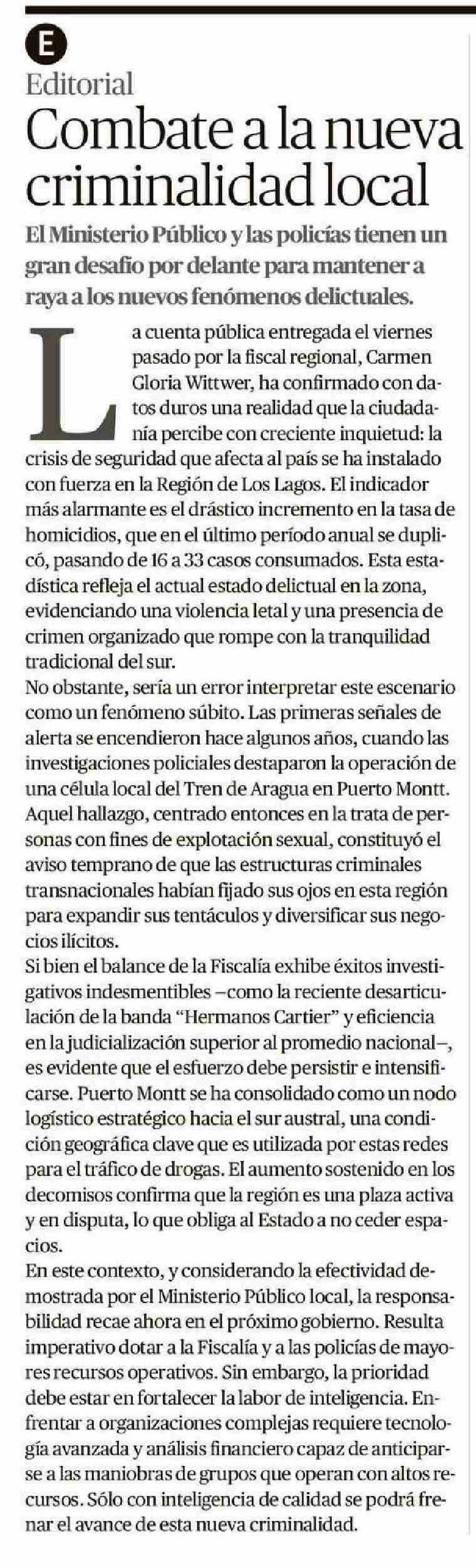 Editorial: Combate a la nueva criminalidad local