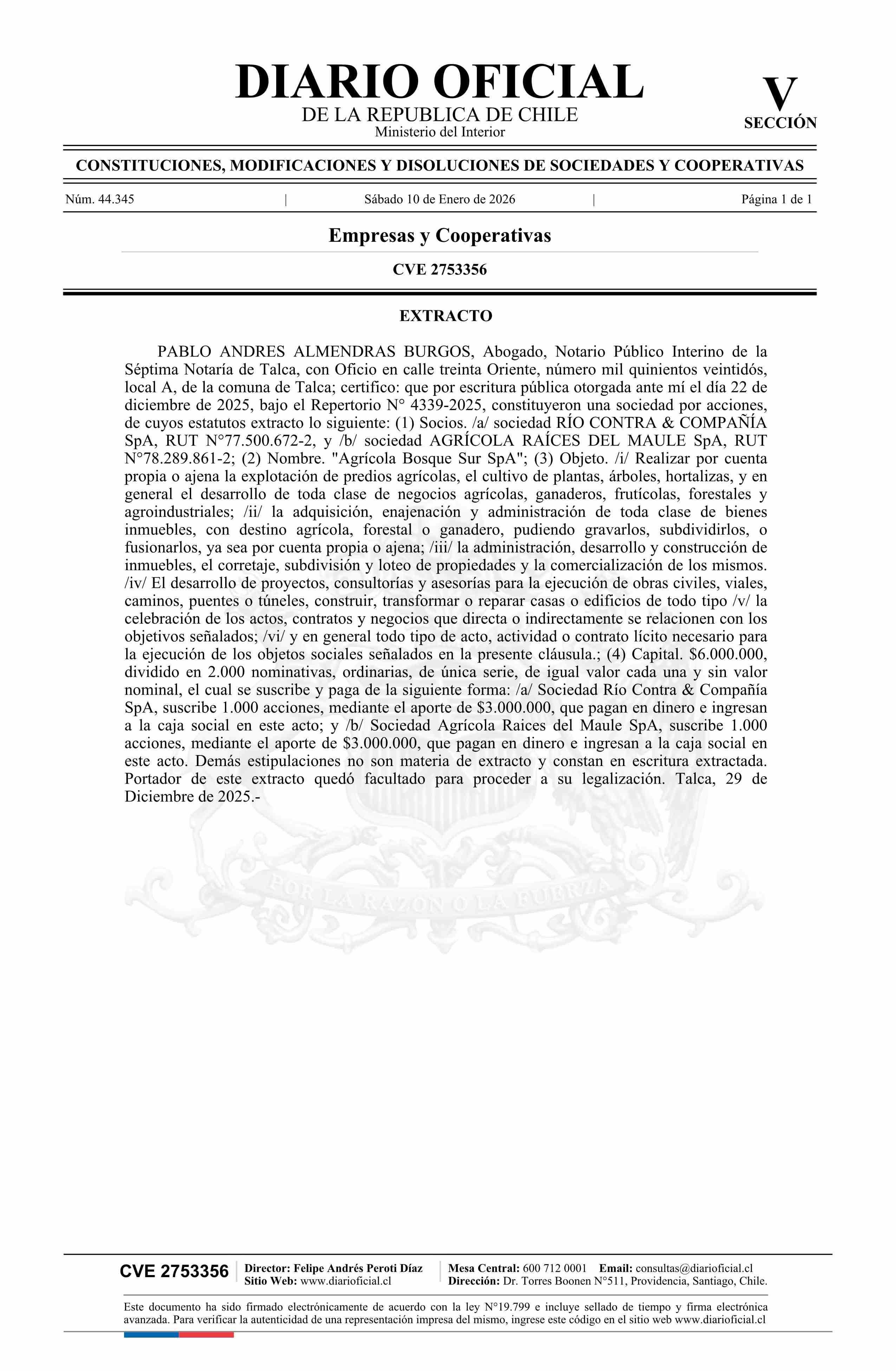 Diario Oficial Edición Electrónica (Diario Oficial de Chile - 5 Empresas Y Cooper)