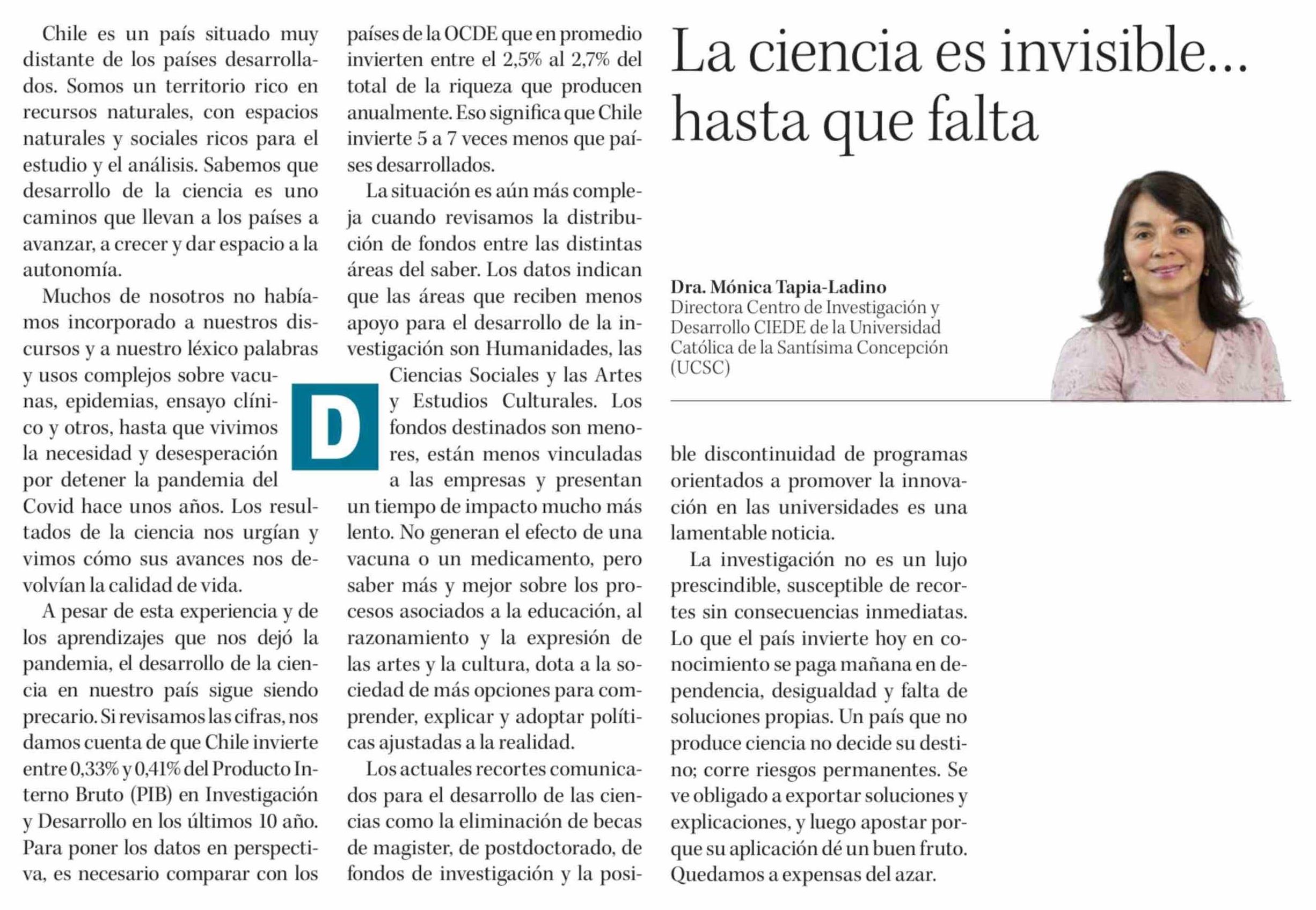Columnas de Opinión: La ciencia es invisible ... hasta que falta