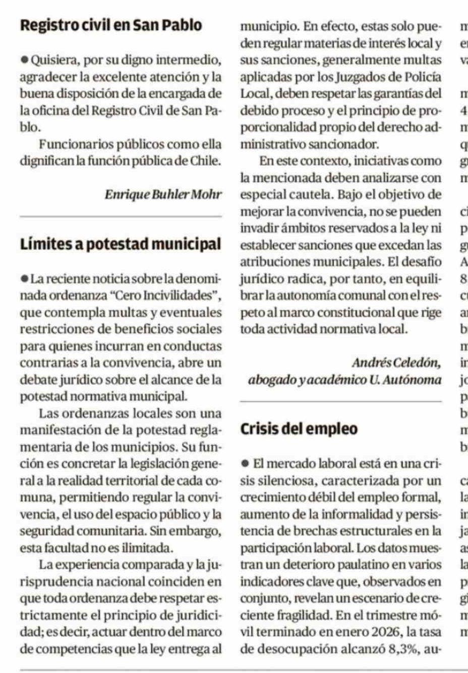 Cartas: Límites a potestad municipal