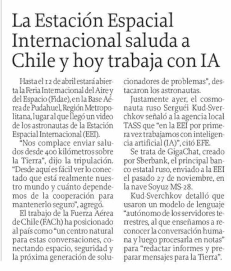 La Estación Espacial Internacional saluda a Chile y hoy trabaja con IA