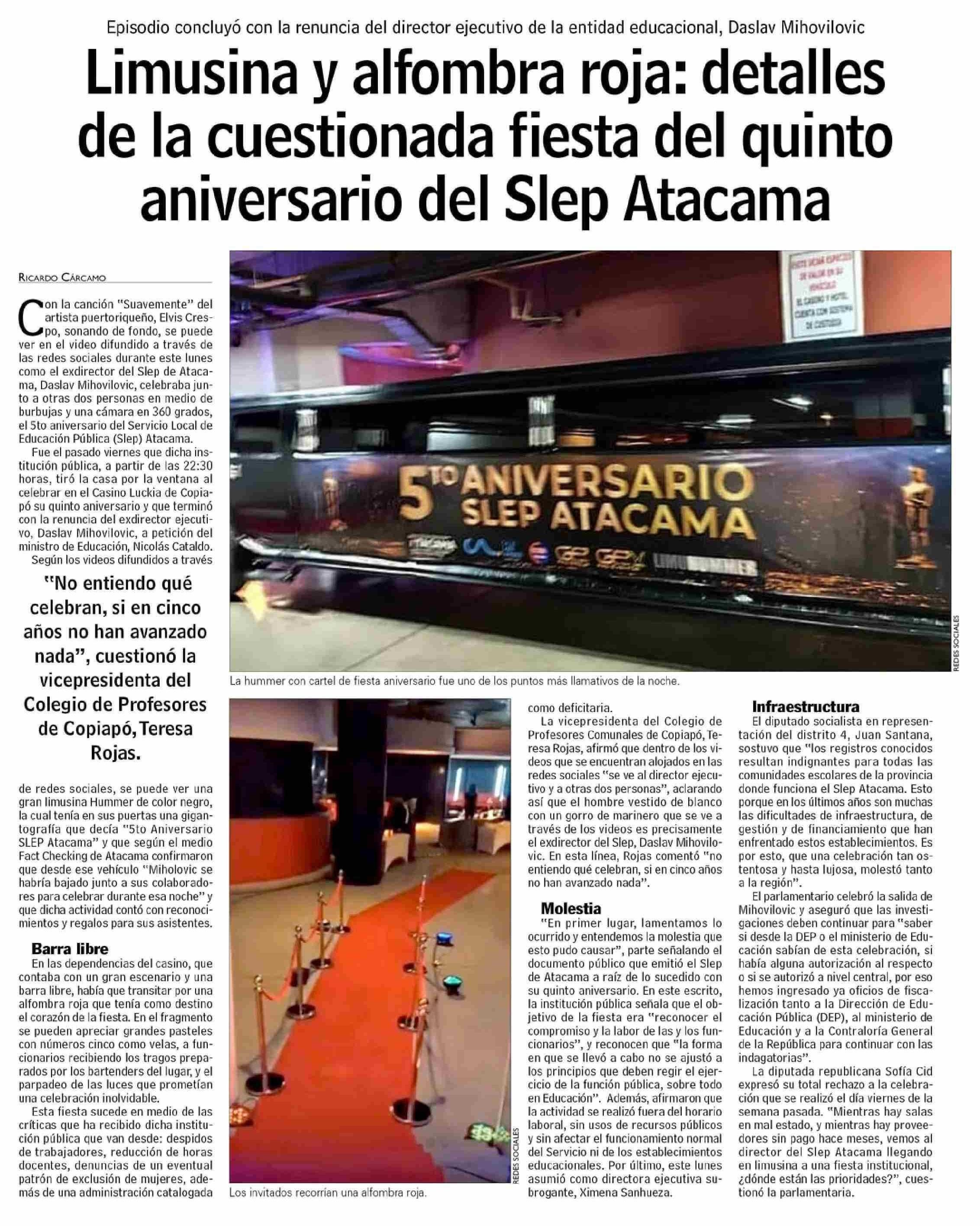 Limusina y alfombra roja: detalles de la cuestionada fiesta del quinto aniversario del Slep Atacama
