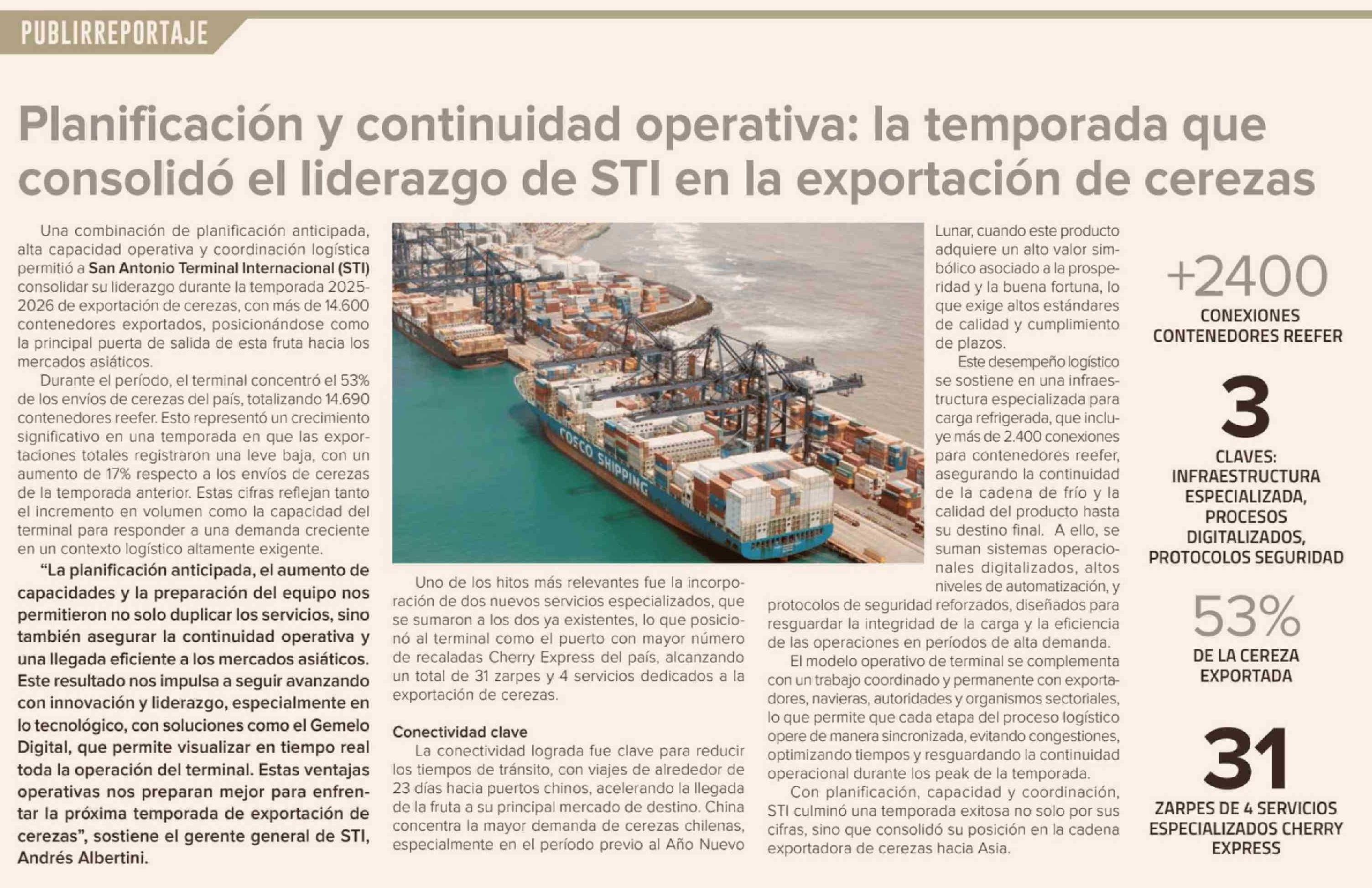 Título: Planificación y continuidad operativa: la temporada que consolidó el liderazgo de STI en la exportación de cerezas