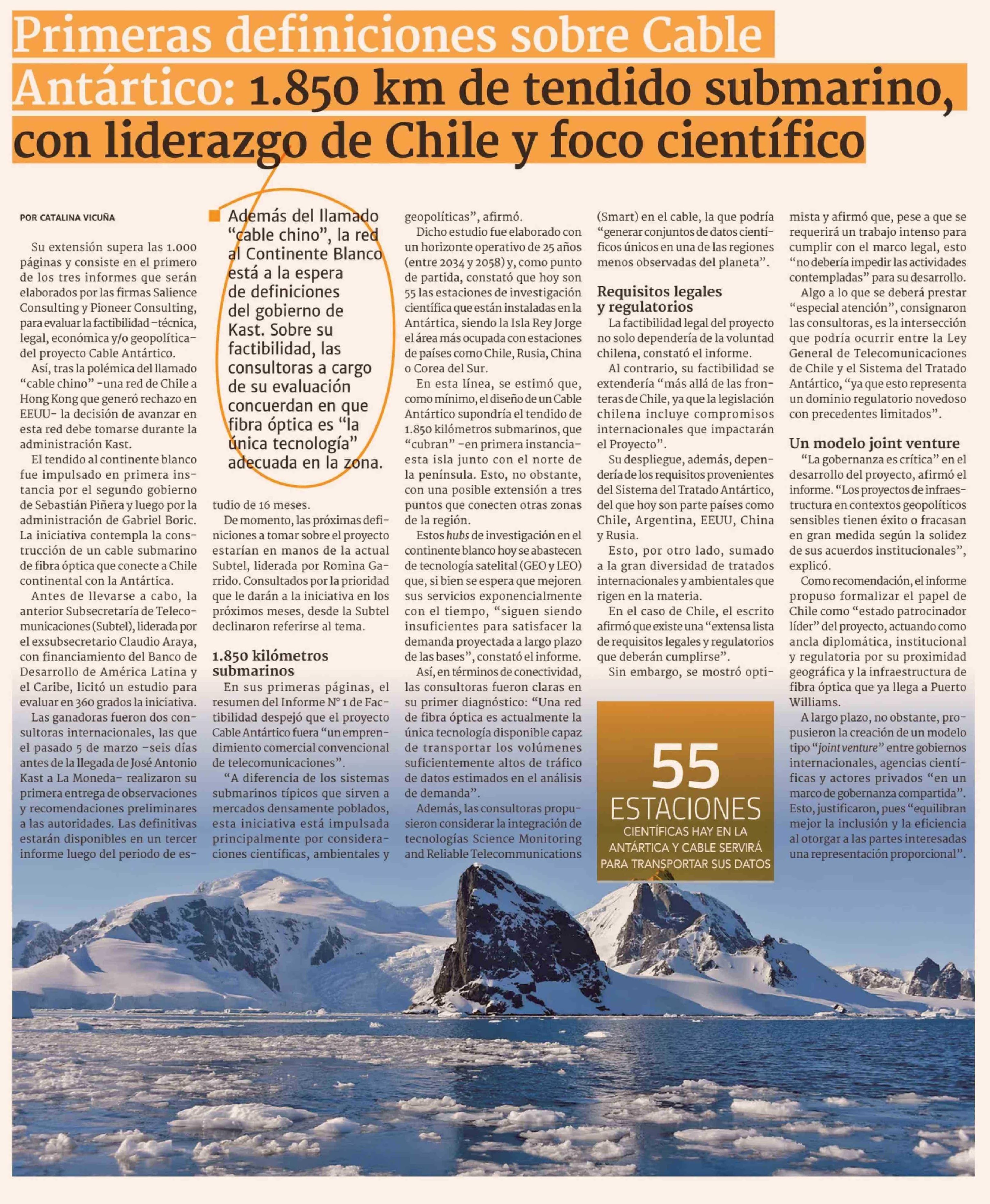 Primeras definiciones sobre Cable Antártico: 1.850 km de tendido submarino, con liderazgo de Chile y foco científico