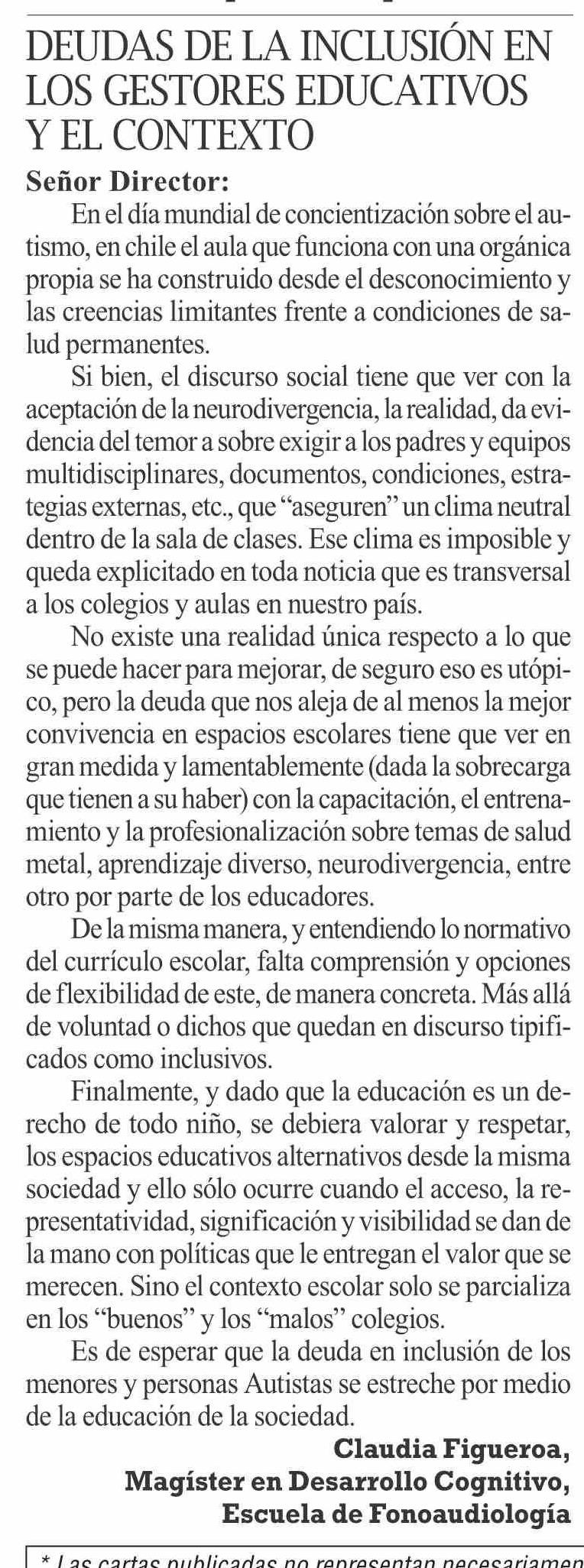 Cartas: Deudas de la inclusión en los gestores educativos y el contexto