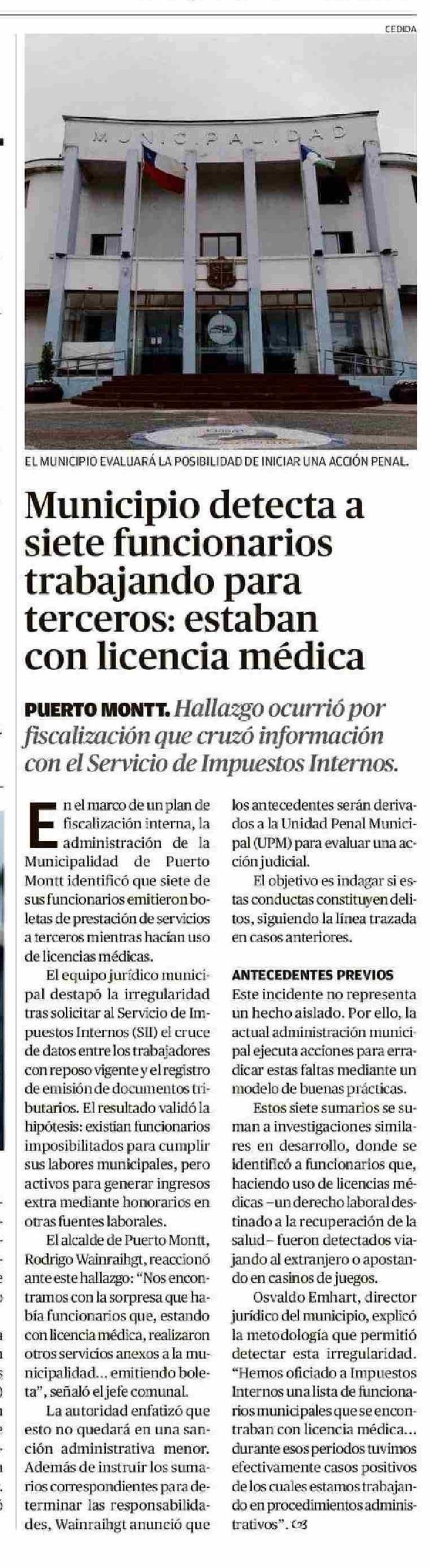 Municipio detecta a siete funcionarios trabajando para terceros: estaban con licencia médica