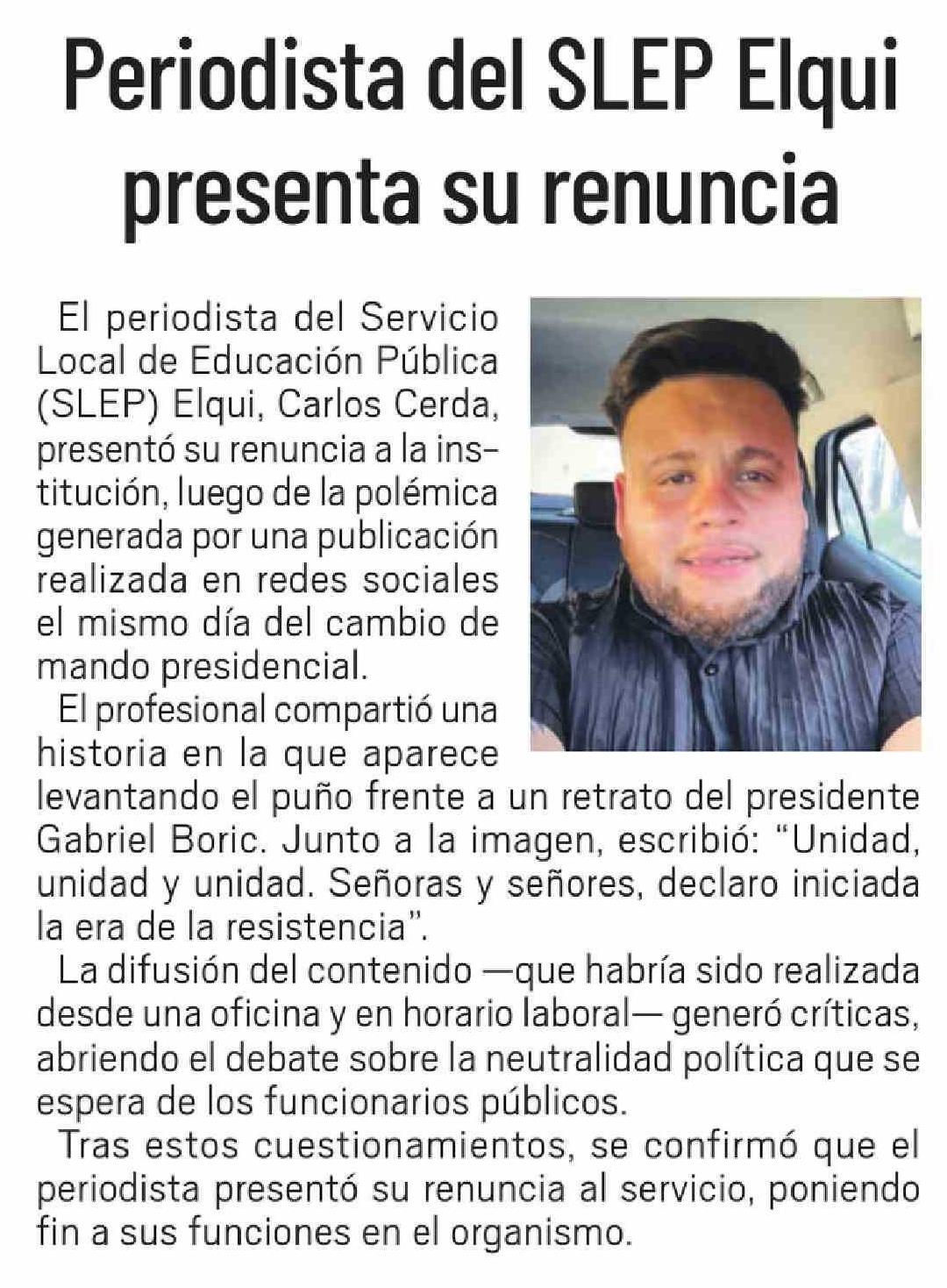 Periodista del SLEP Elqui presenta su renuncia