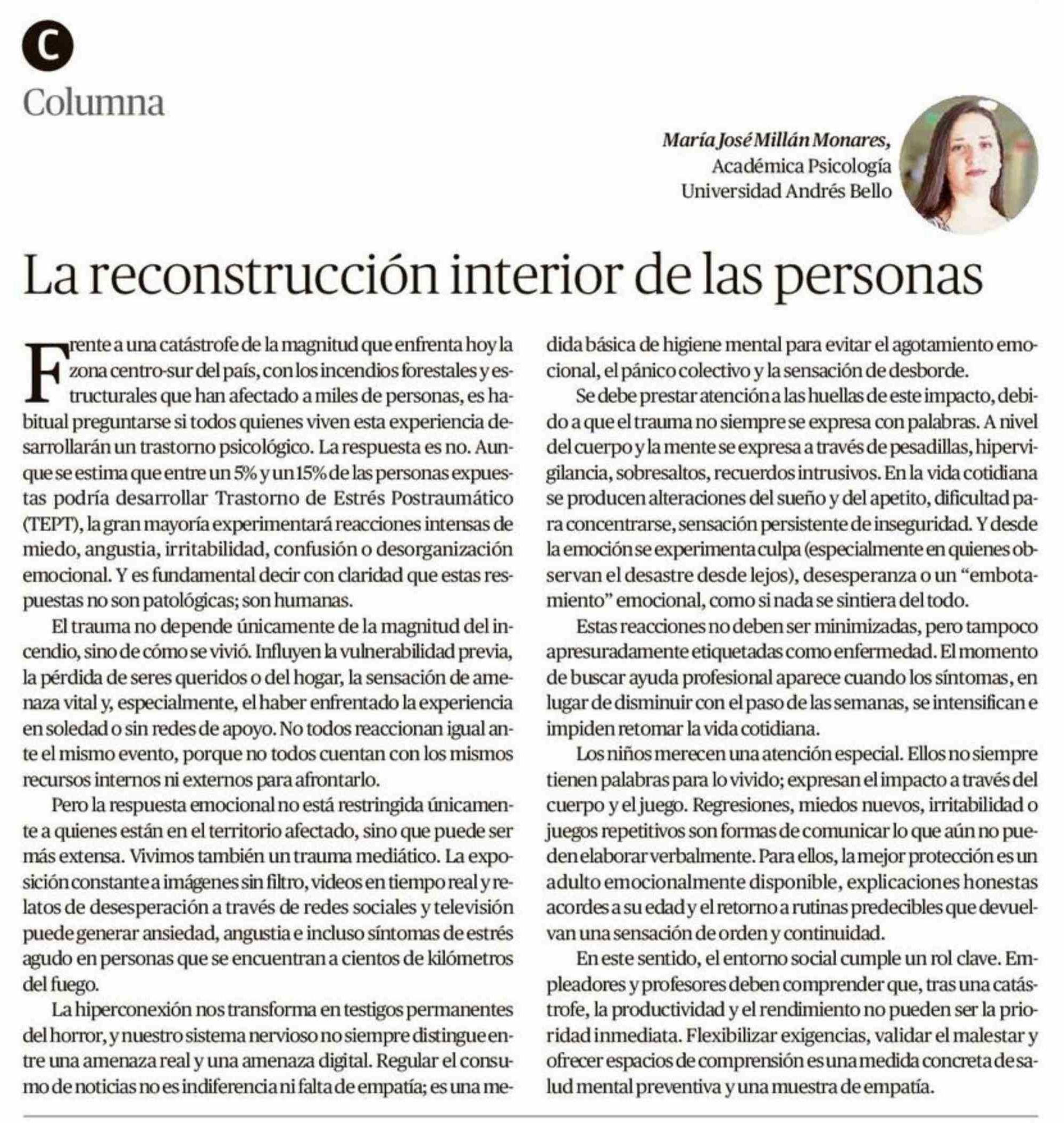 Columnas de Opinión: La reconstrucción interior de las personas