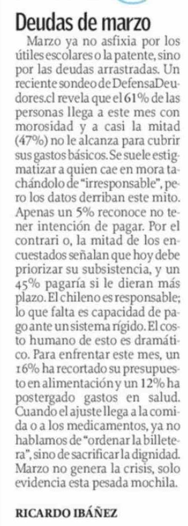 CARTAS: Deudas de marzo