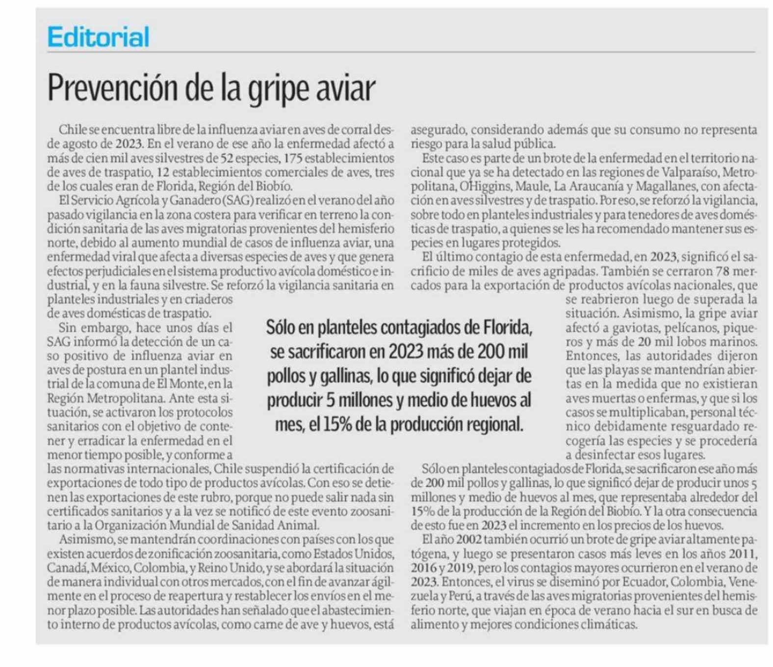 EDITORIAL: Prevención de la gripe aviar
