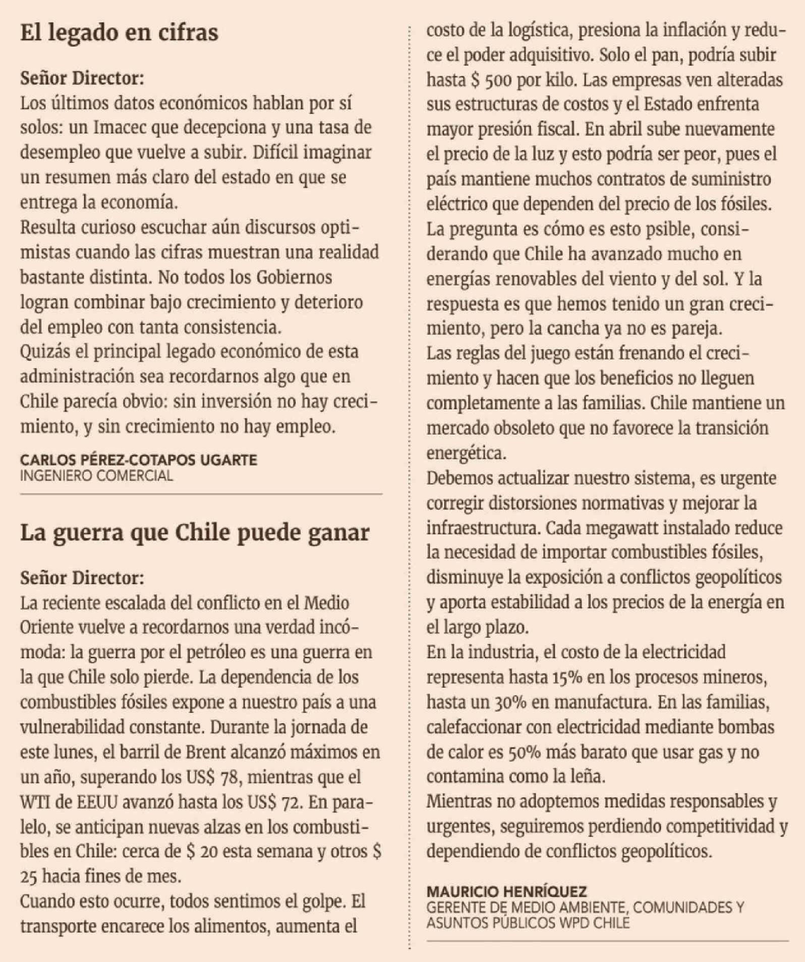 Cartas: La guerra que Chile puede ganar