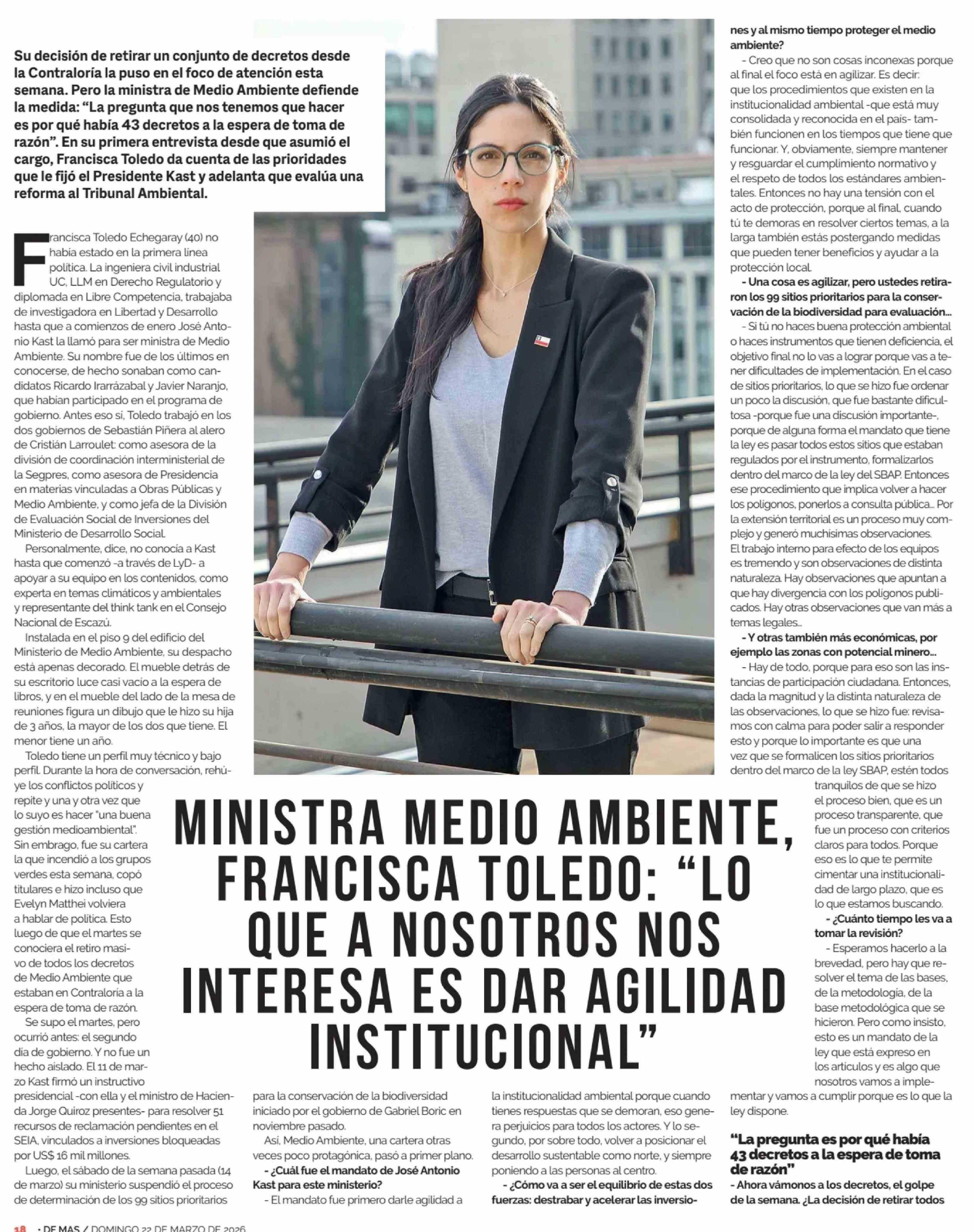 MINISTRA MEDIO AMBIENTE, FRANCISCA TOLEDO: "LO QUE A NOSOTROS NOS INTERESA ES DAR AGILIDAD INSTITUCIONAL"