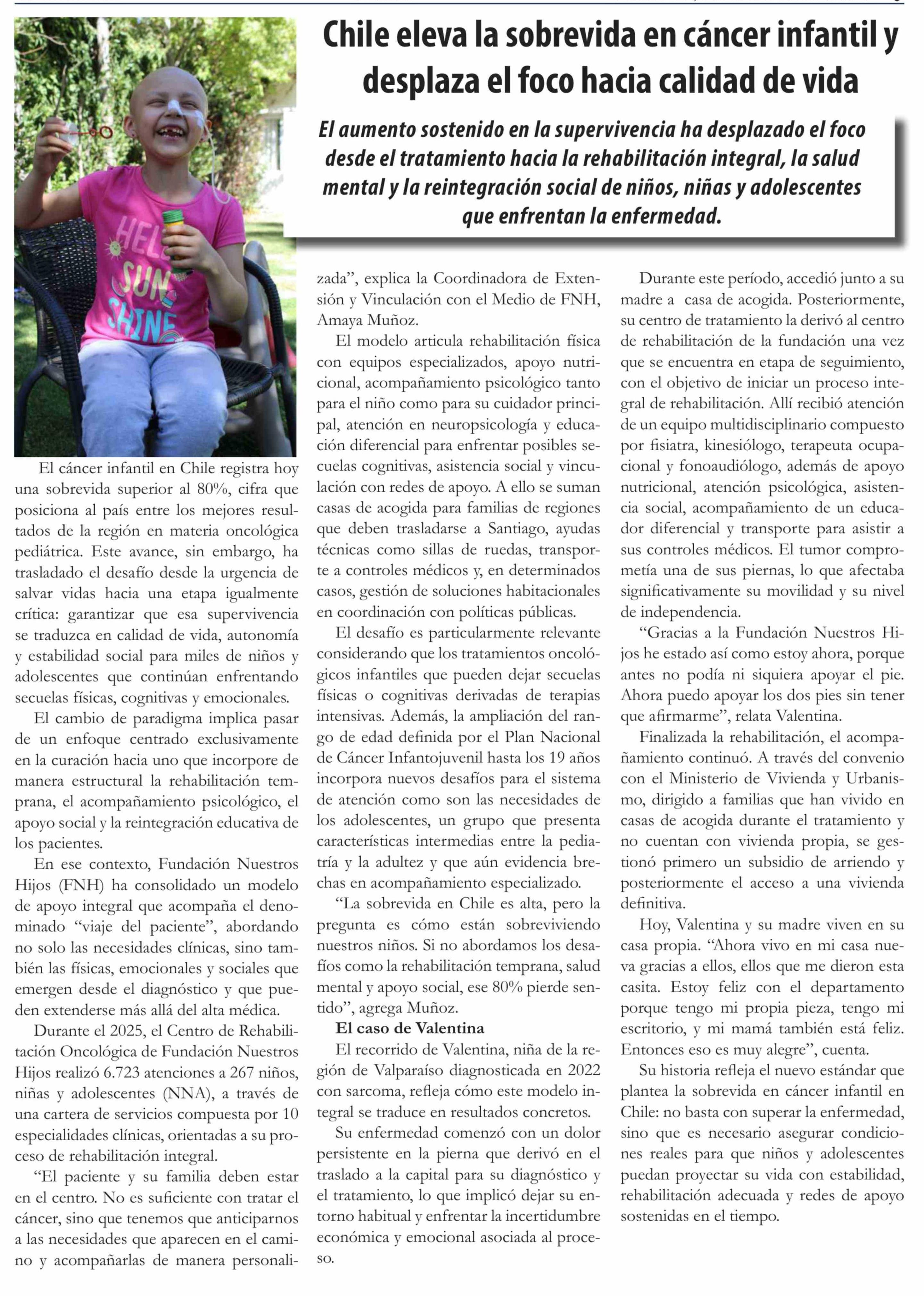 Título: Chile eleva la sobrevida en cáncer infantil y desplaza el foco hacia calidad de vida