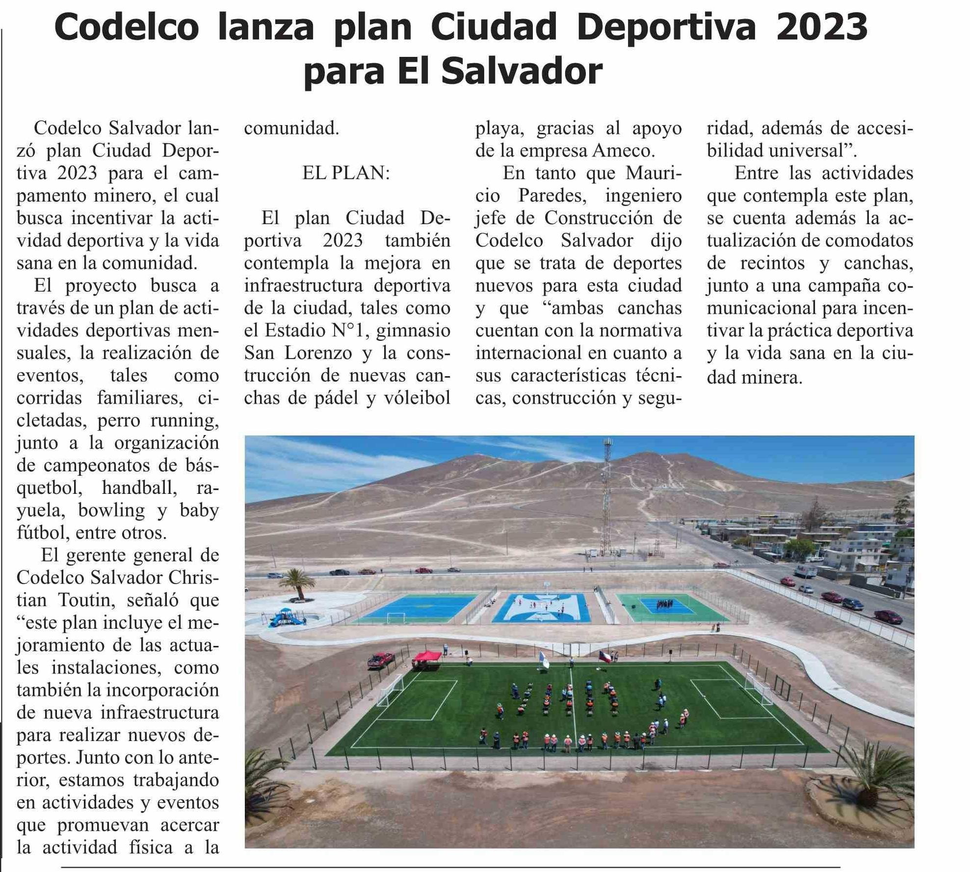Codelco lanza plan Ciudad Deportiva 2023 para El Salvador