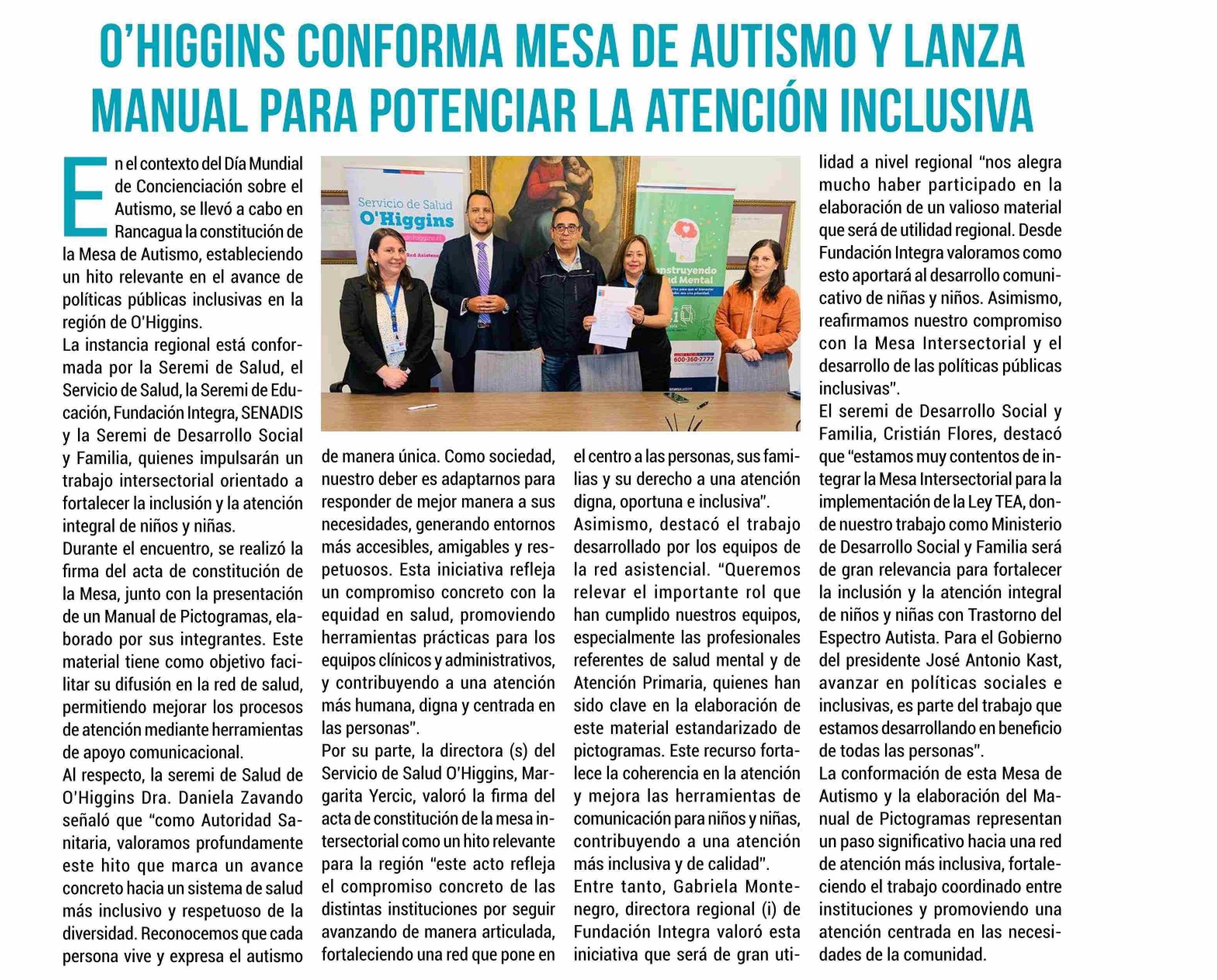 0'HIGGINS CONFORMA MESA DE AUTISMO Y LANZA MANUAL PARA POTENCIAR LA ATENCION INCLUSIVA